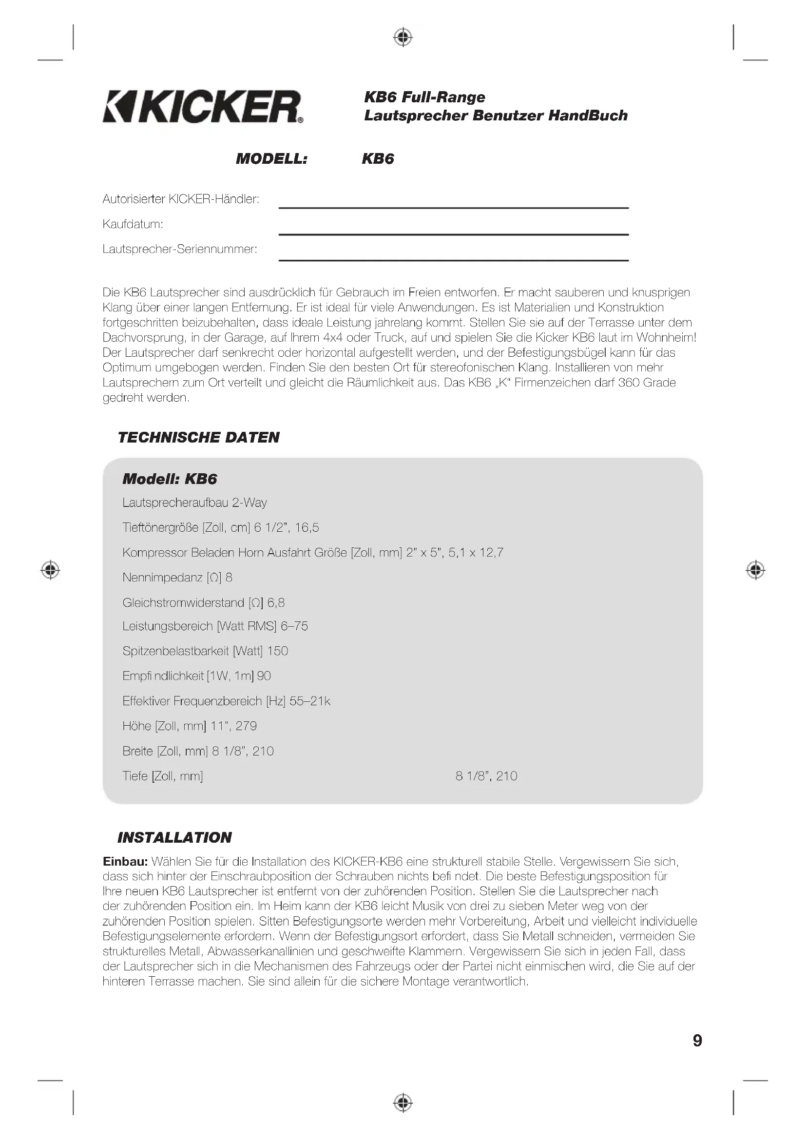 KB6 - Lautsprecher KICKER - Kostenlose Bedienungsanleitung