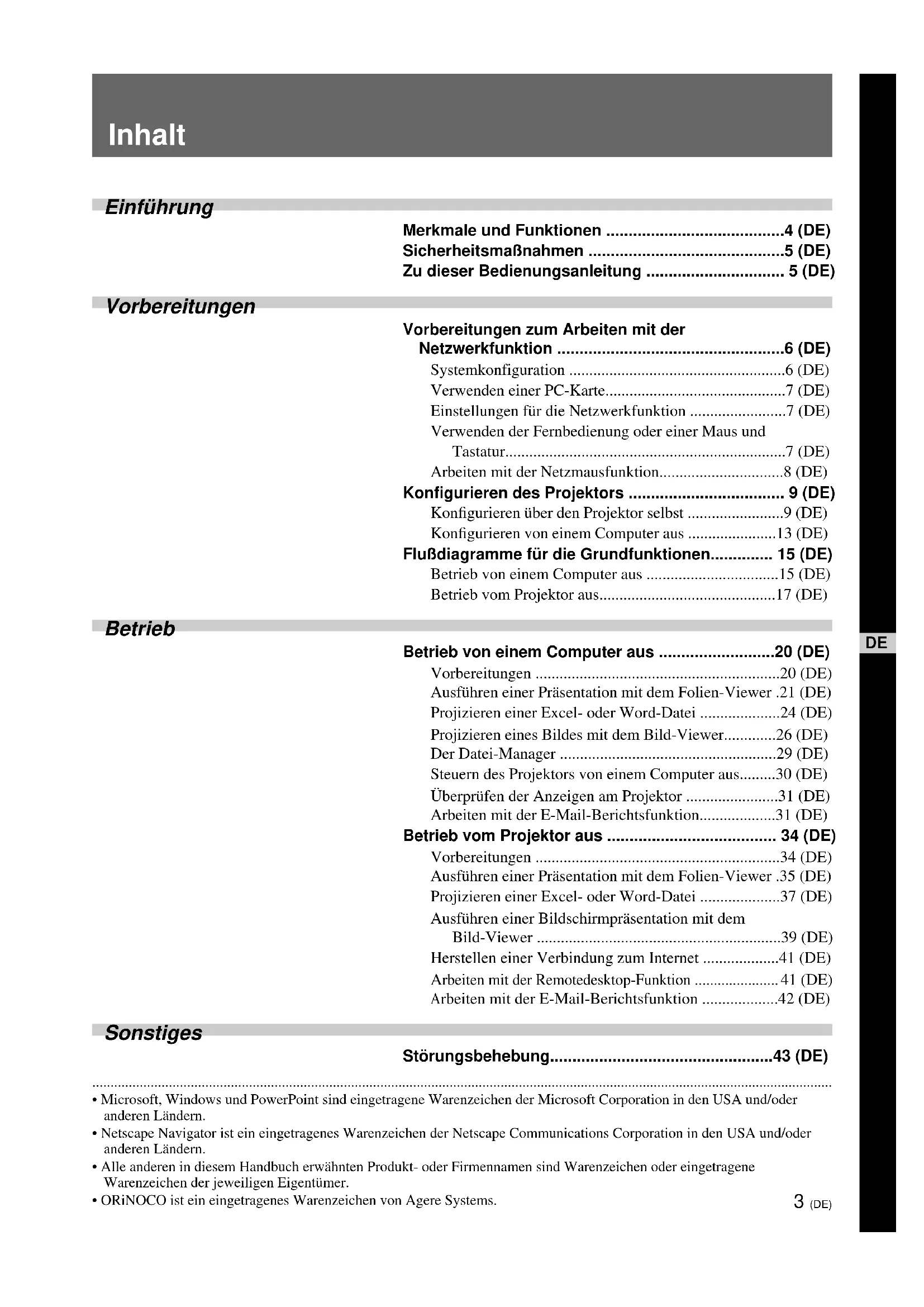 - (DE) Konfigurieren des Projektors p. 9