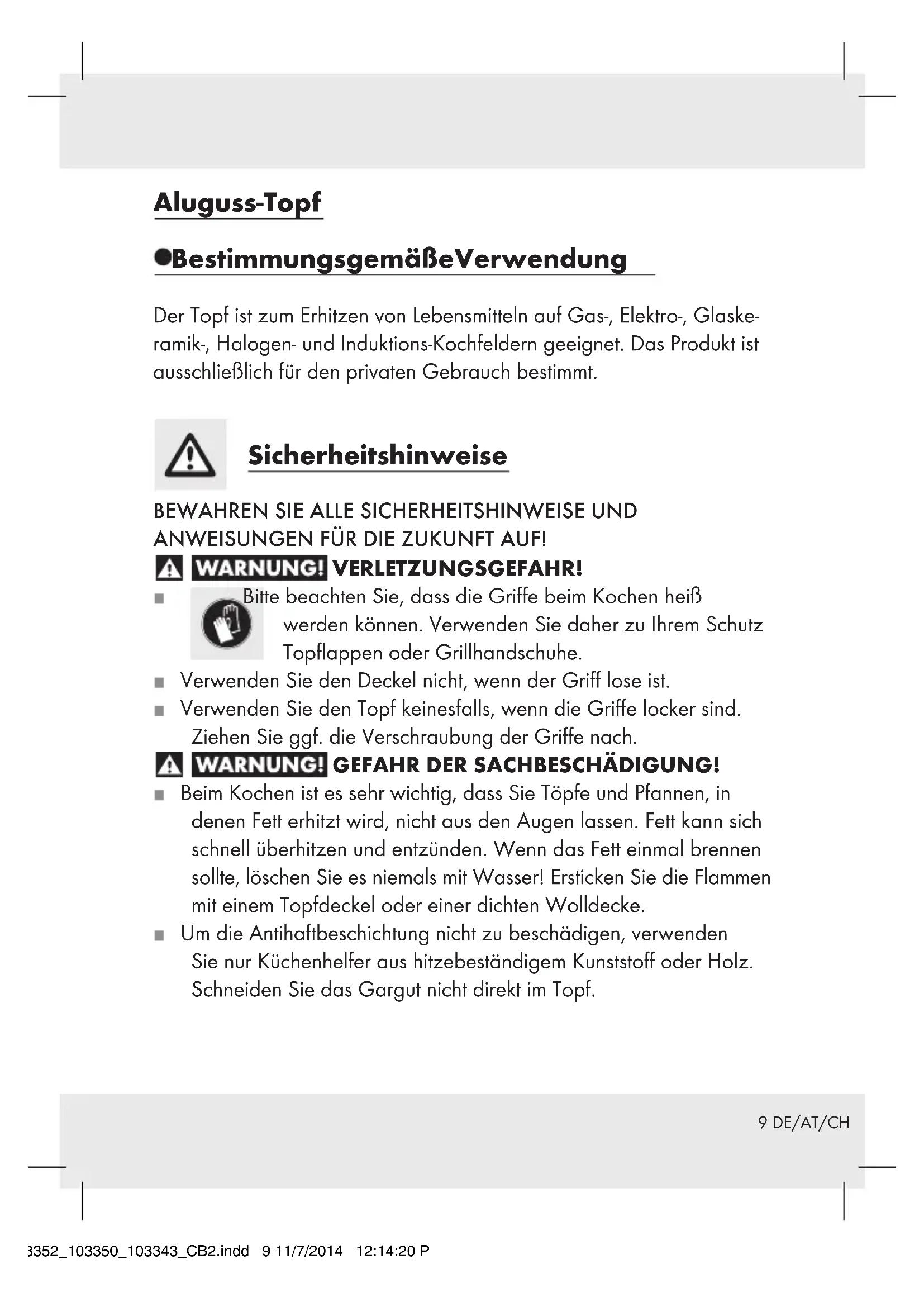 ALUGUSS-TOPF Bedienungs- und Sicherheitshinweise