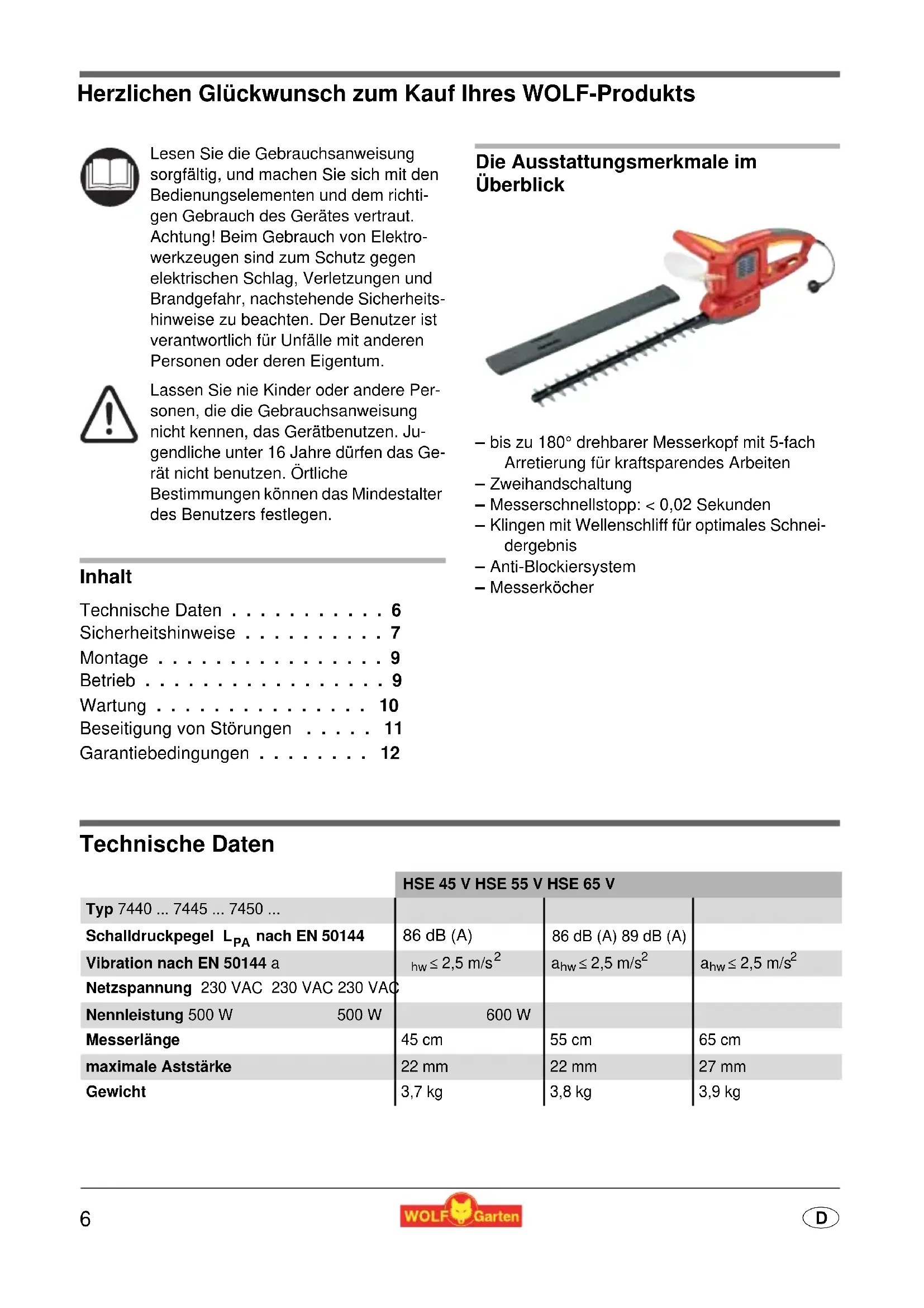 - D Herzlichen Glückwunsch zum Kauf Ihres WOLF-Produkts Inhalt Technische Daten p. 6