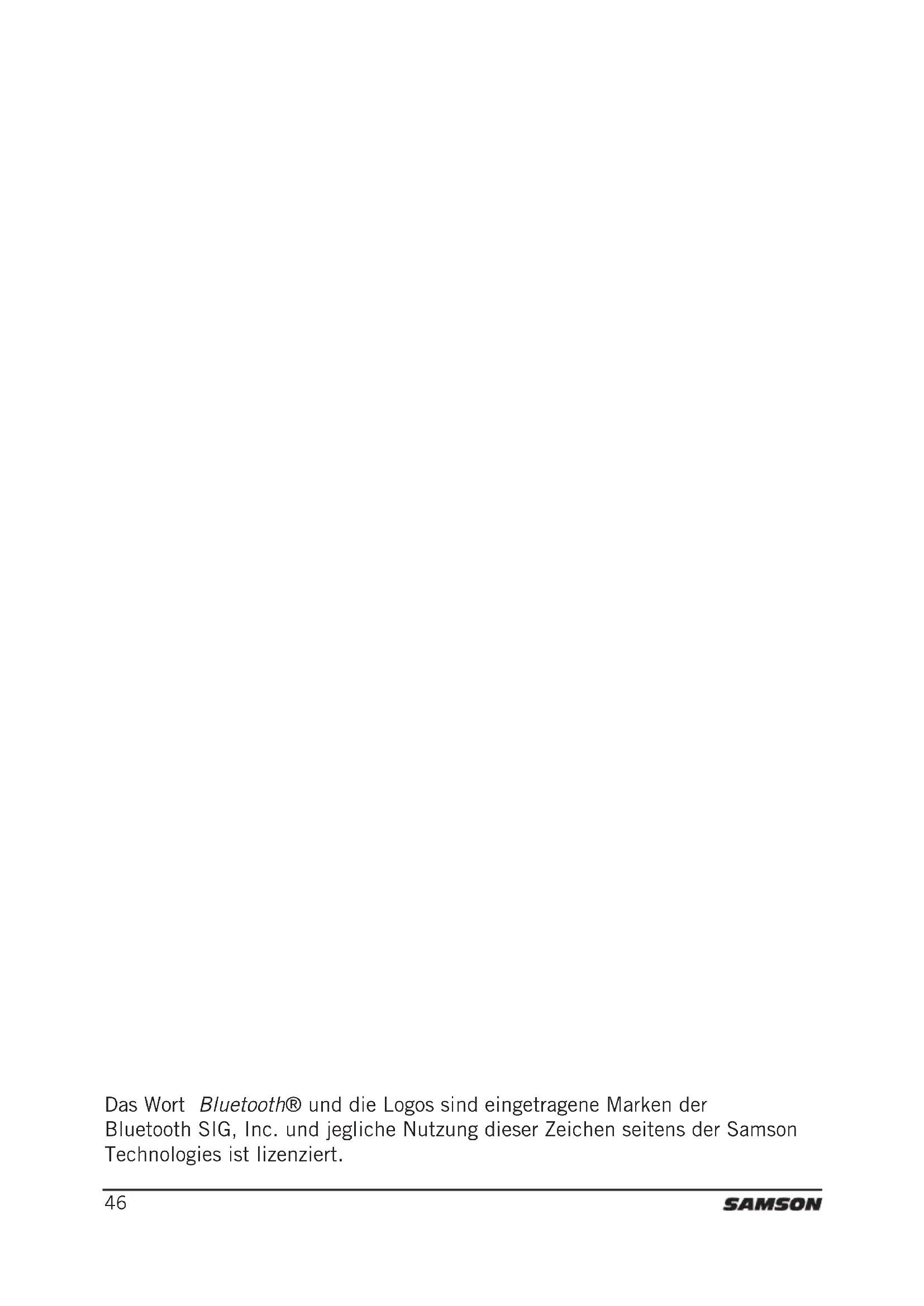 Das Wort Bluetooth® und die Logos sind eingetragene Marken der Bluetooth SIG, Inc. und jegliche Nutzung dieser Zeichen seitens der Samson Technologies ist lizenziert.47 XP106 • Tragbares PA System Wichtige Sicherheitsinformationen WARNUNG: UM DAS RISIKO EINES ELEKTRISCHEN SCHLAGS ZU RE