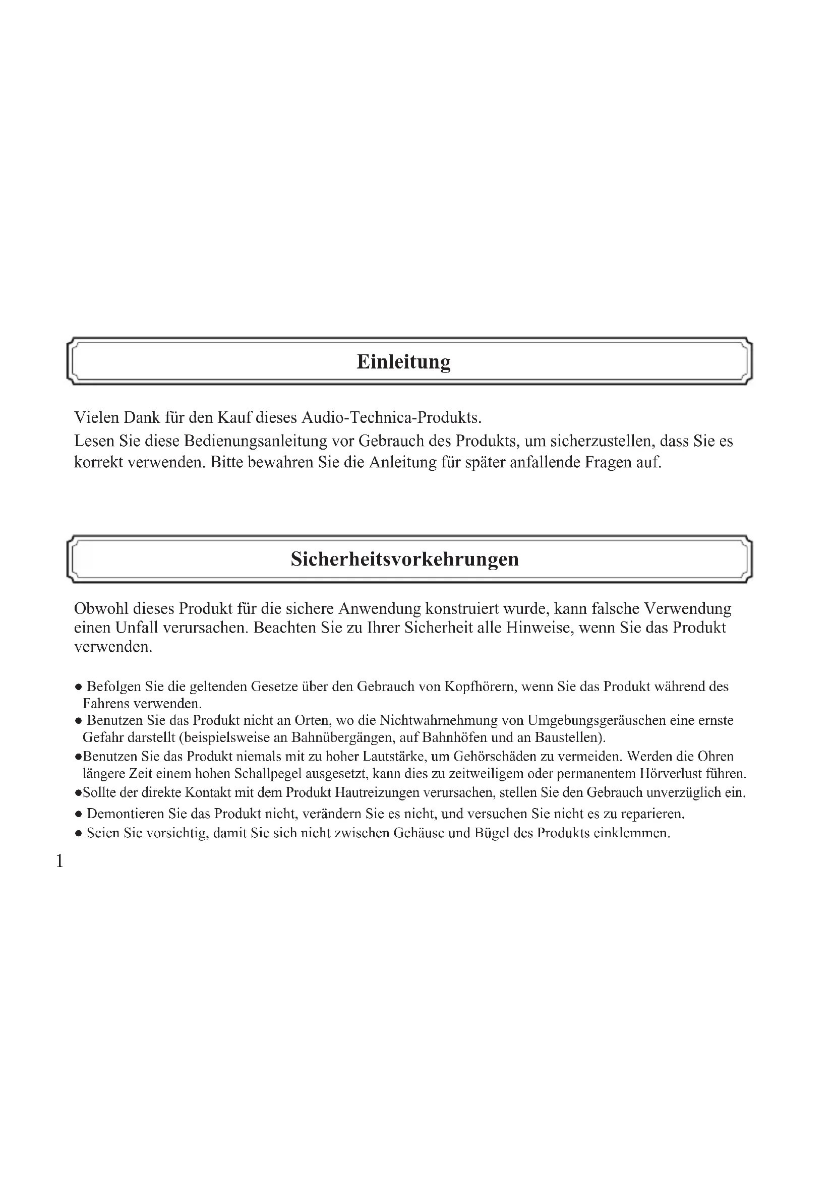 Vielen Dank für den Kauf these Audio-Technica-Produkts.
