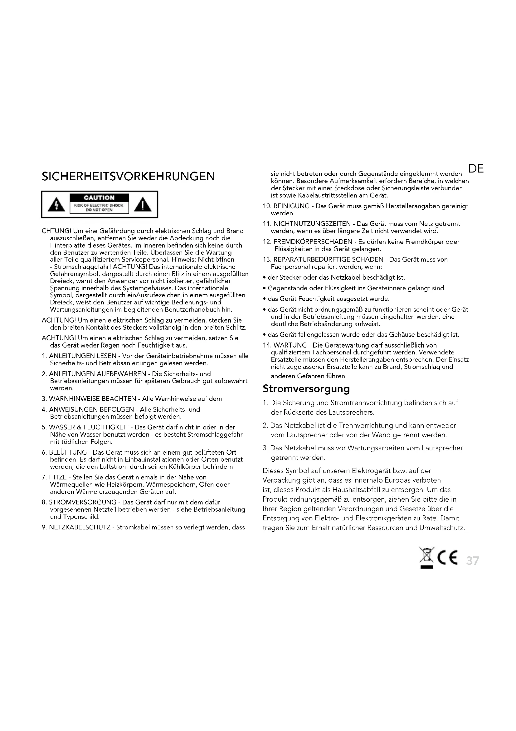 3. Das Netzkabel muss vor Wartungsarbeiten vom Lautsprecher