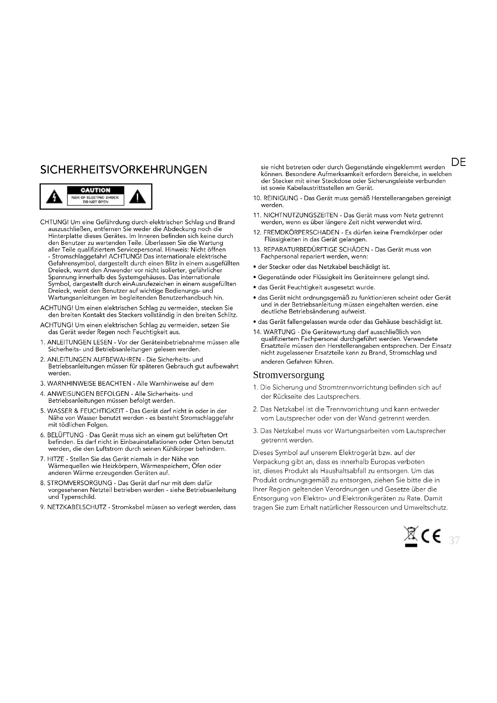 3. Das Netzkabel muss vor Wartungsarbeiten vom Lautsprecher