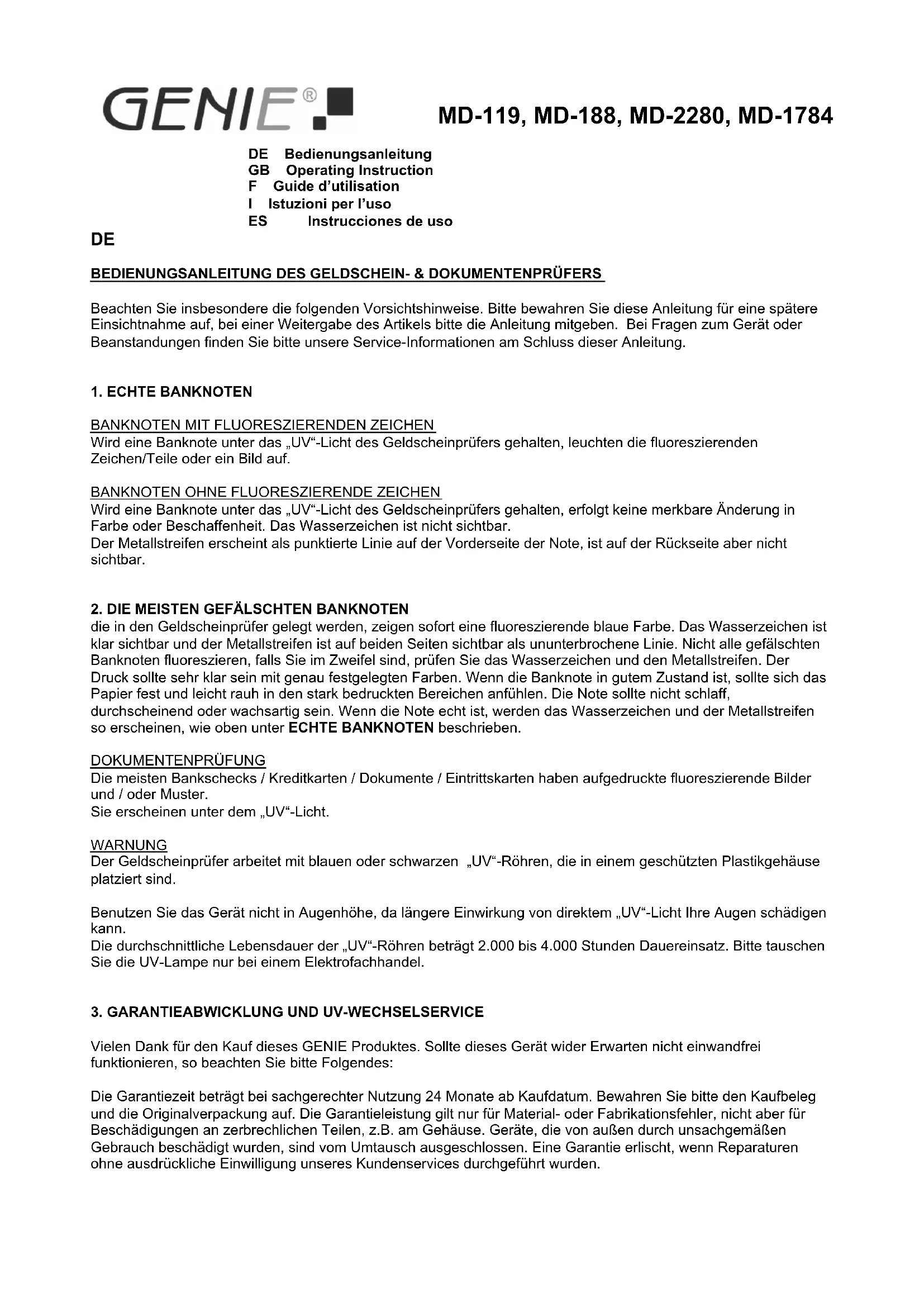 MD 119 - Detektor Genie - Kostenlose Bedienungsanleitung