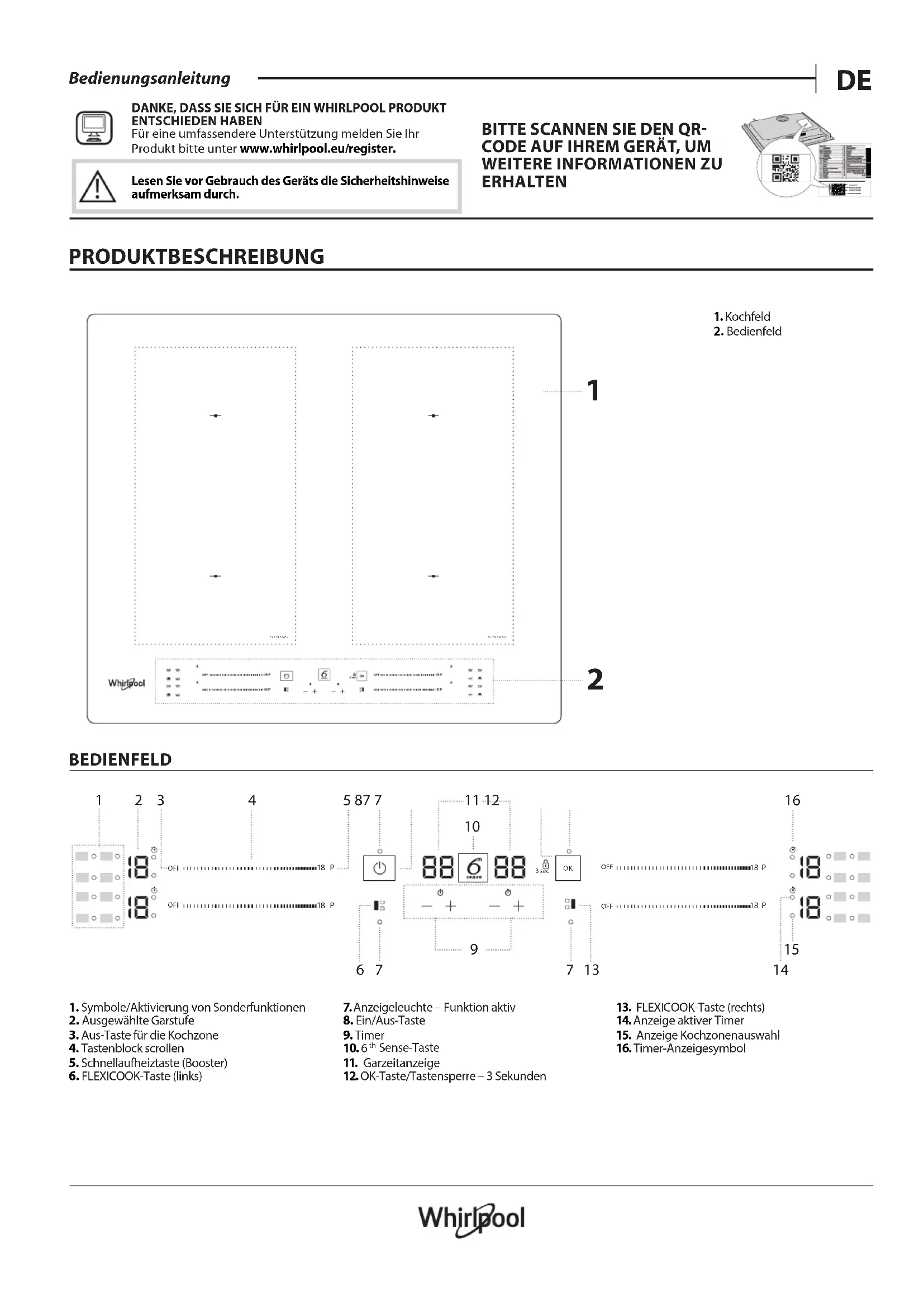 DANKE, DASS SIE SICH FÜR EIN WHIRLPOOL PRODUKT ENTSCHIEDEN HABEN Für eine umfassendere Unterstützung melden Sie Ihr Produkt bitte unter www.whirlpool.eu/register.