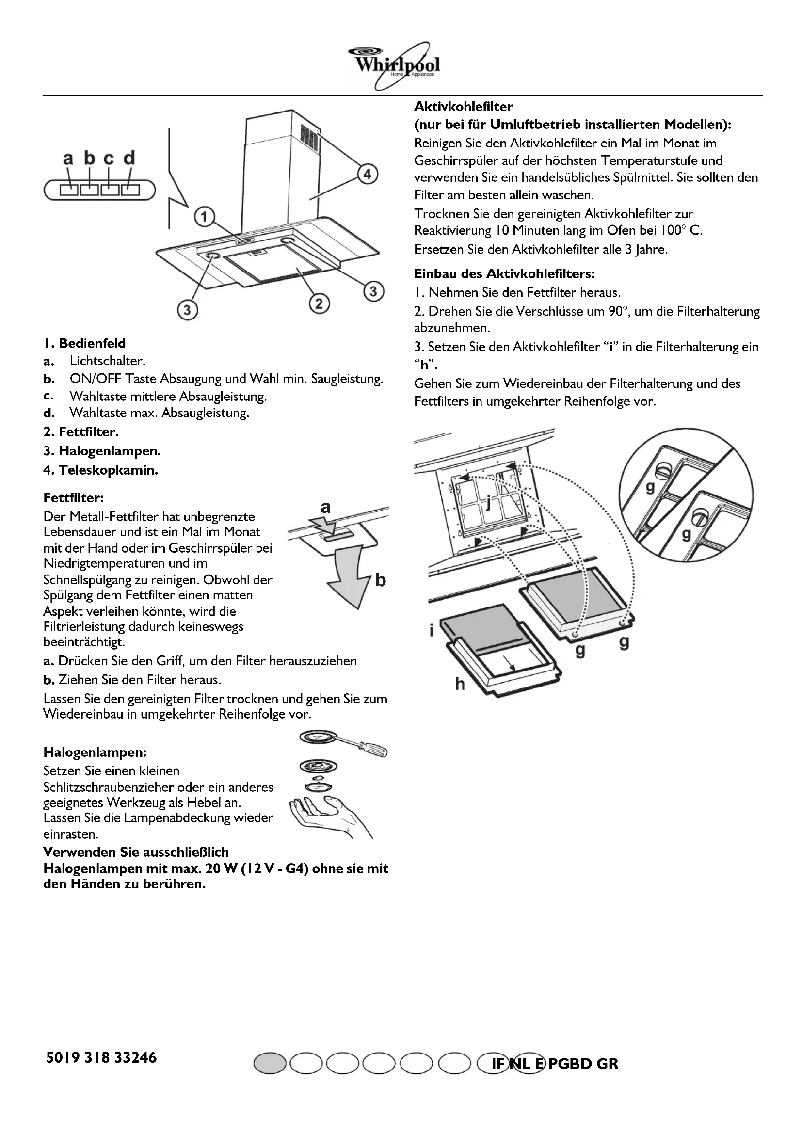 AKR 902 GL IX - Dunstabzugshaube WHIRLPOOL - Kostenlose Bedienungsanleitung