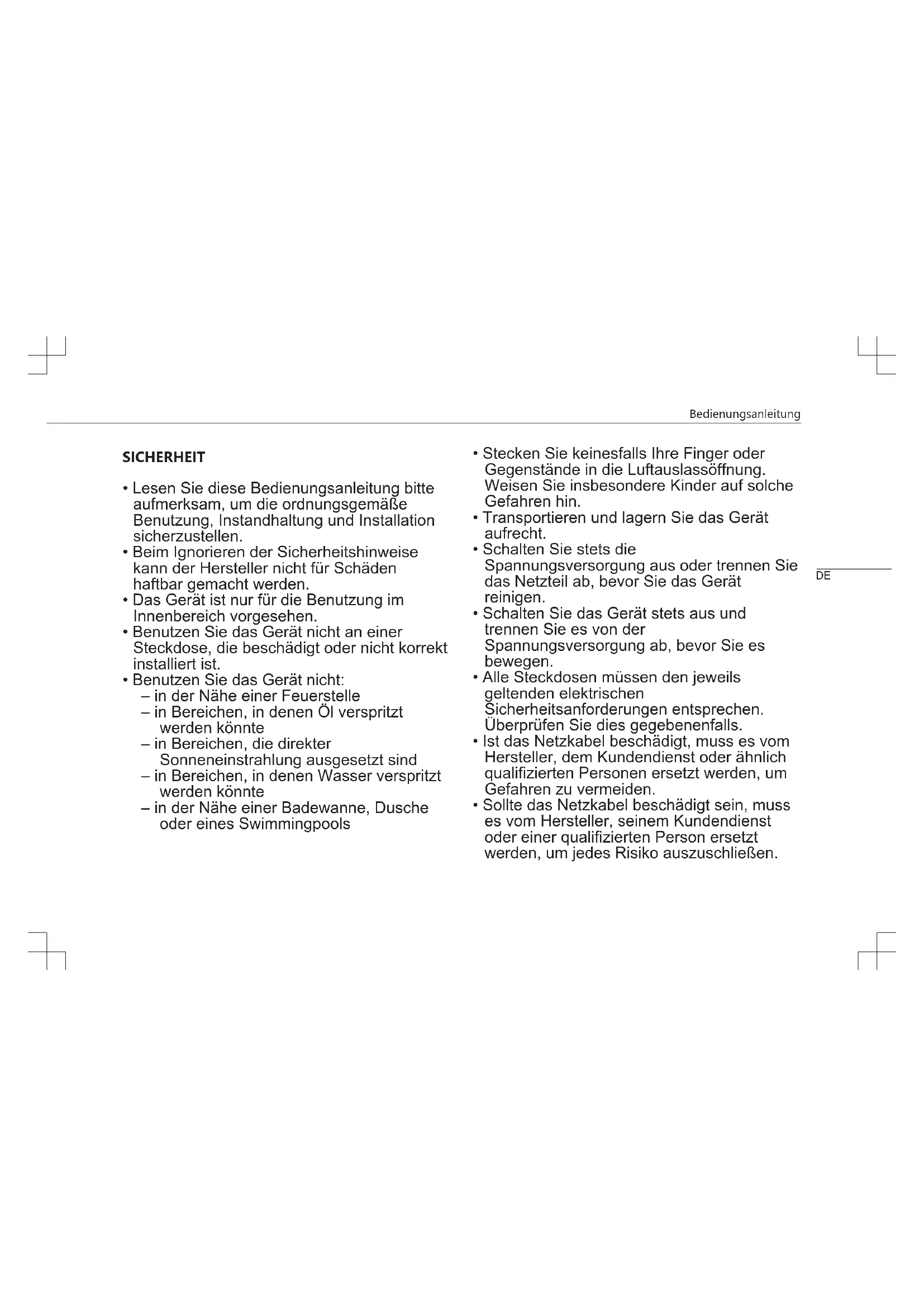 - Stecken Sie keinesfalls Ihre Finger oder Gegenstände in die Luftauslassöffnung. Weisen Sie insbesondere Kinder auf solche Gefahren hin.