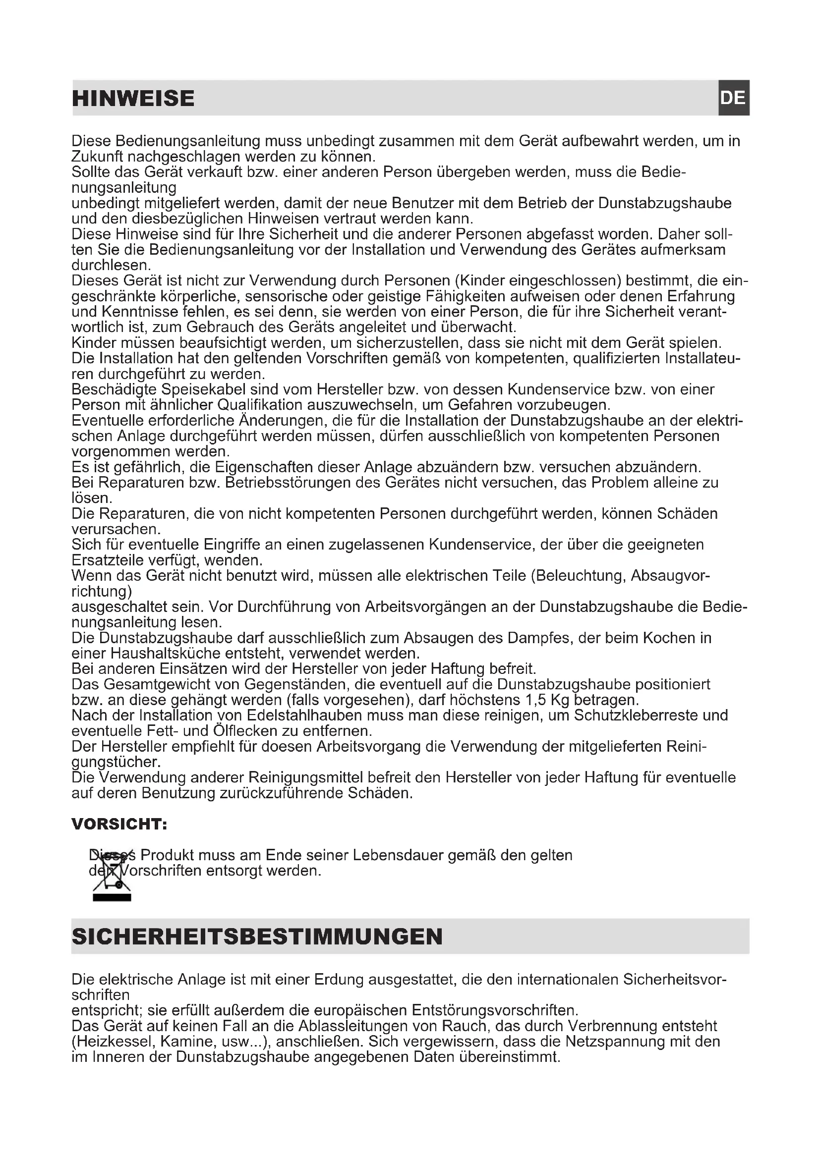 SICHERHEITSBESTIMMUNGEN