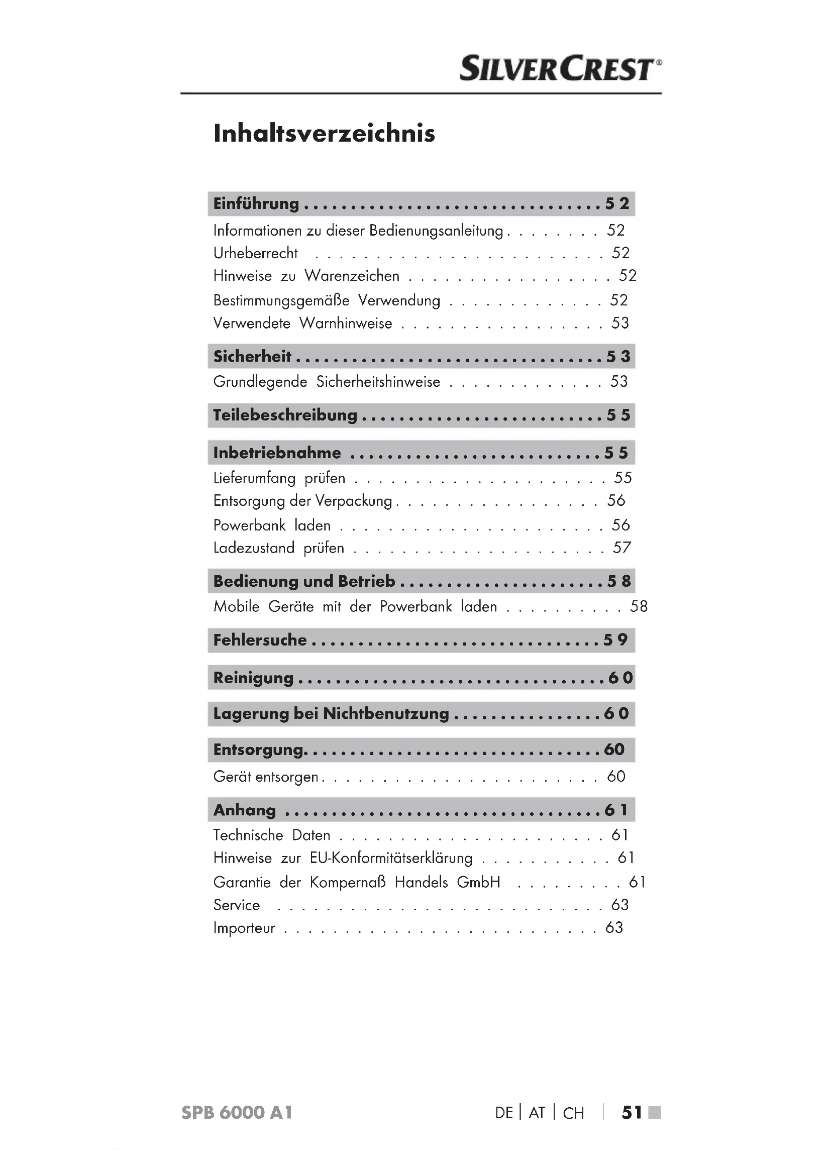 - 51 ■ SPB 6000 A1 Inhaltsverzeichnis Einführung p. 52