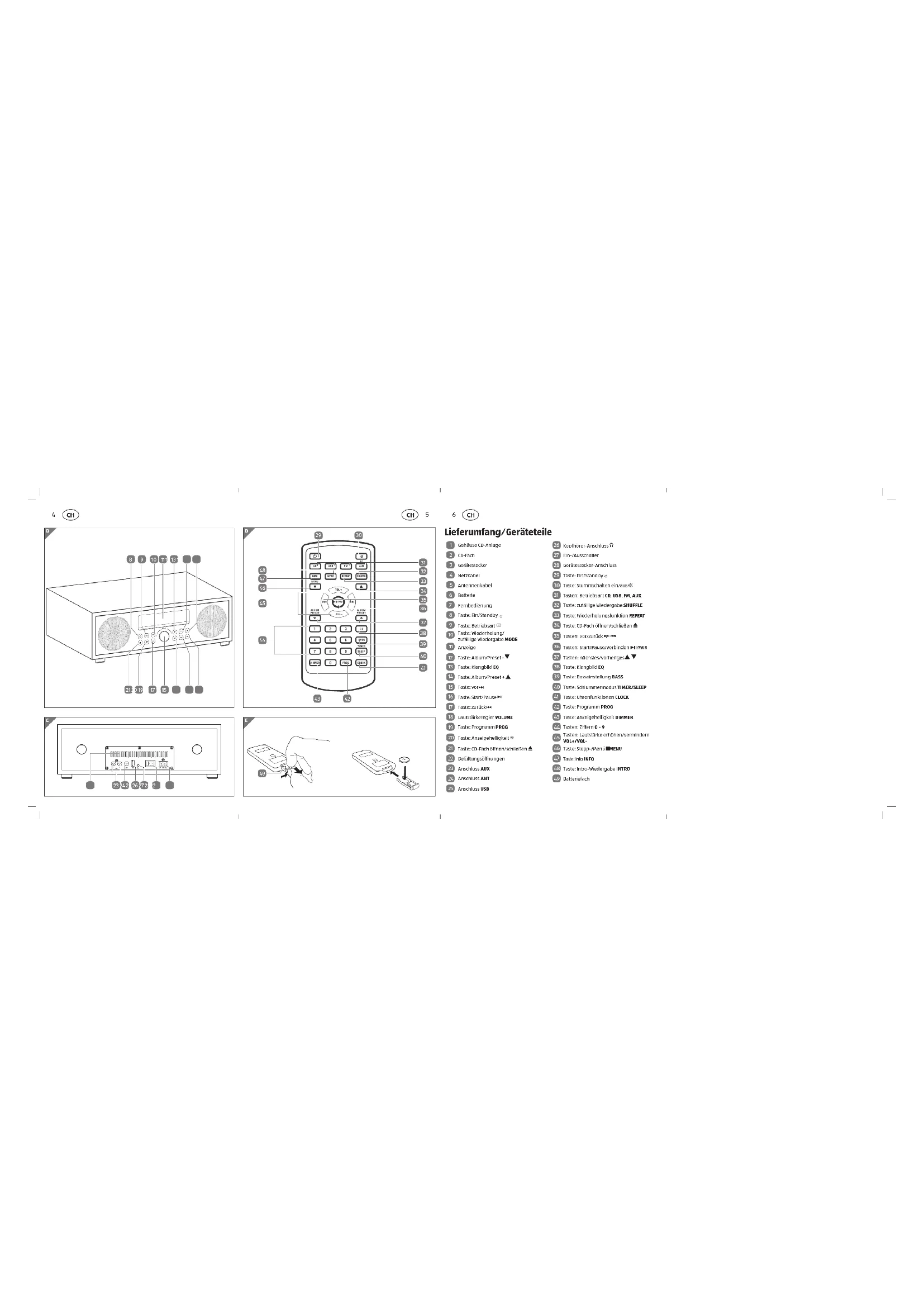 an der Mikroanlage, können Sie die Helligkeit der Anzeige einstellen (sieheAbb.BundD).Grundfunktionen