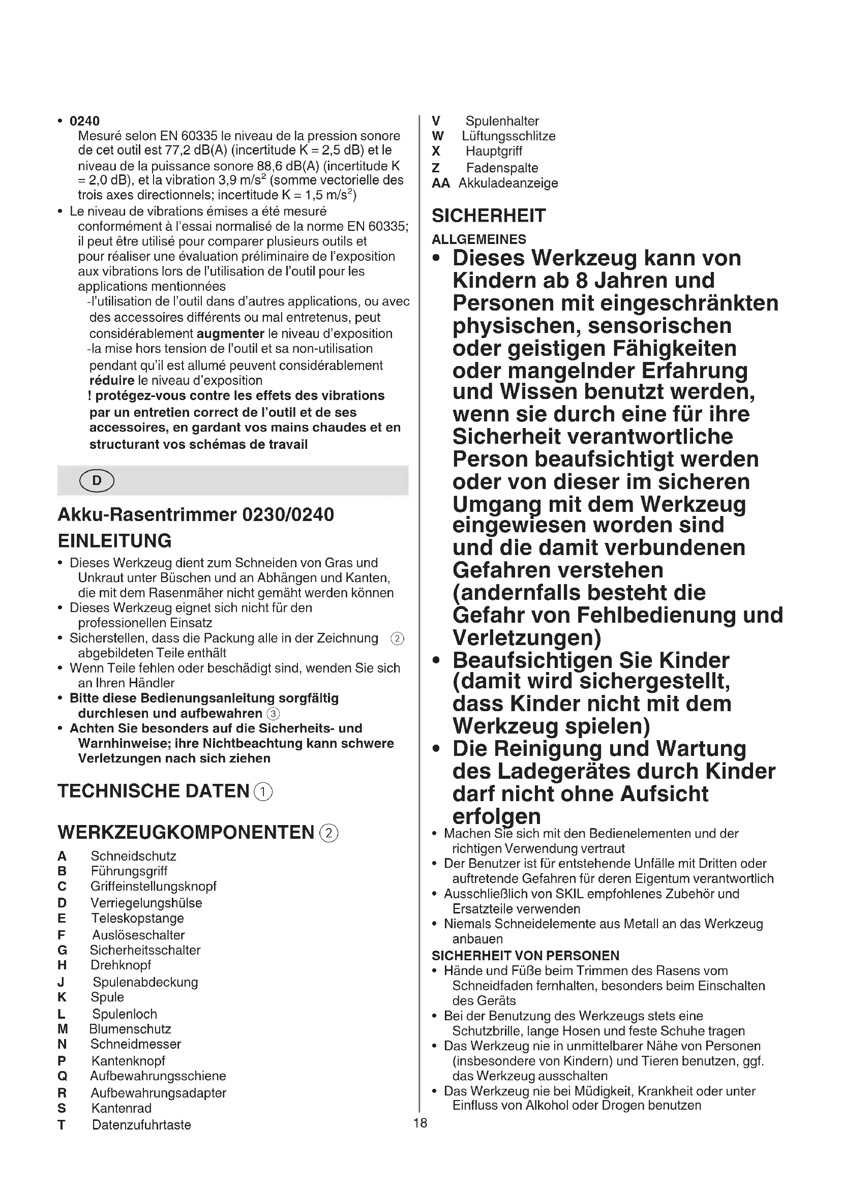 0230 CA - Grasenschneider SKIL - Kostenlose Bedienungsanleitung