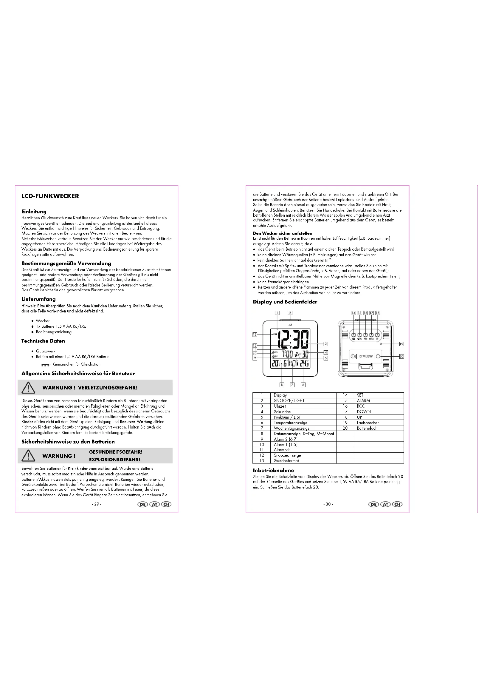 LCD-FUNKWECKER Bedienungs- und Sicherheitshinweise