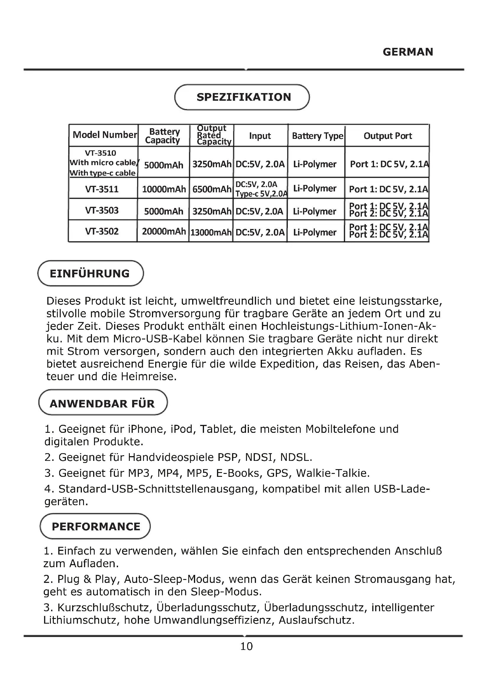 VT3510 - Tragbarer Akku V-TAC - Kostenlose Bedienungsanleitung