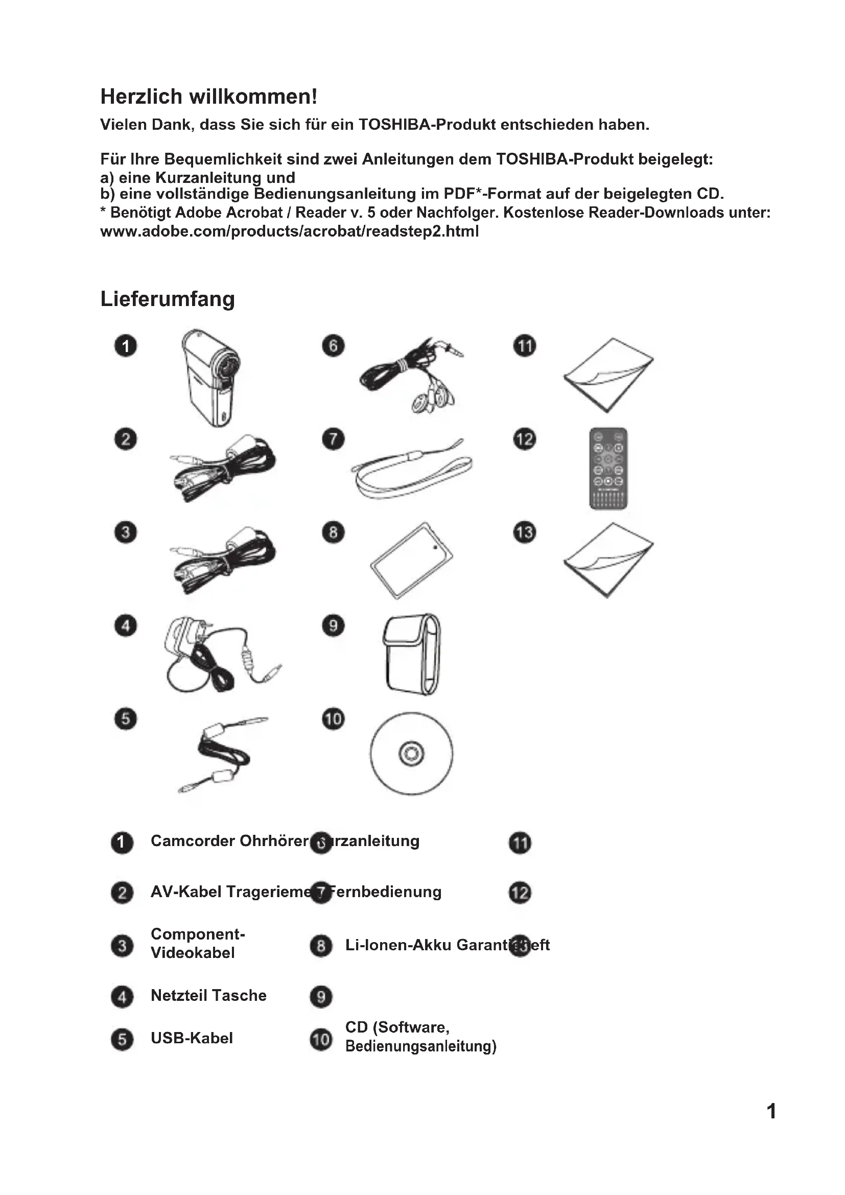 - Benötigt Adobe Acrobat / Reader v. 5 oder Nachfolger. Kostenlose Reader-Downloads unter: www.adobe.com/products/acrobat/readstep2.html Lieferumfang