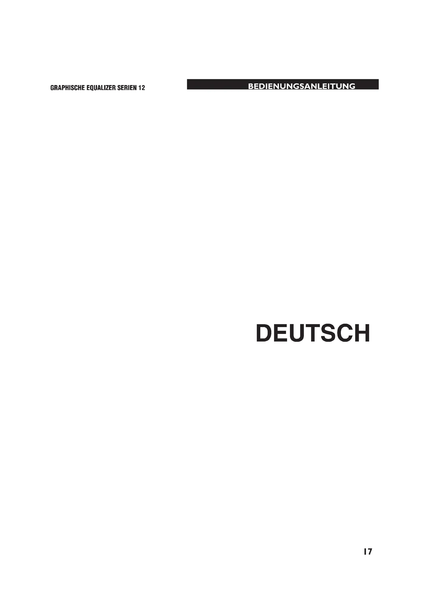 BEDIENUNGSANLEITUNGAnschluß an die Masse InBetrIeBnahMe DieEqualizerSerie12sindfürNominalpegelvon+4dBuentwickeltworden. DieEqualizerkönnenmitsymmetriertenoderasymmetrischenQuellenbenutztwerden,unddieAusgängekönnen mitsymmetriertenoderasymmetrischenLastenbenutztwerden,wenndiegeeignetenKabelverwendenwerden. EinesymmetrierteÜbertragungisteinzweiadrigesabgeschirmtesKabel,dessenzweimittlerenAderndasgleiche Signalführen,abermitentgegengesetzterPolarität,wennsiesichaufdieMassebeziehen.Eineasymmetrische ÜbertragungistnormalerweiseeineinadrigesabgeschirmtesKabel,diemittlereAderdasSignalführt,unddie AbschirmungdieMassenverbindungdarstellt. DerEqualizerbesitzteineEingangsimpedanzvon40Wsymmetriertund20kW asymmetrisch.DieAudio-EingängederEqualizerSerie12sinddeshalbfastallenNiedrigimpedanz-Quellenange- paßt(unter2kW). DerAusgangdesEqualizerskanneineLastvon600Wan+18dBuertragen.Zur größtmöglichenUnterdrückungvonBrumm-GeräuschenmiteinersymmetriertenQuelle,vermeidenSiedieEin- undAusgängedesEqualizersderselbenMassezuzuführen.DieAbschirmungendermeistensymmetriertenKabel (3-adrig)sindmitdenbeidenEndenverbunden.DaskannzuMasseschleifenundBrummenführen.Wenndie Brumm-Geräuscheandauern,versuchenSiedieAbschirmungeneinesodermehrererKabel,ambestenamEingang desGerätes(nichtamAusgang),abzutrennen. BeMerKungen Zur BenutZung und anWendung DiegraphischenEqualizerderSerien12sindgeeigneteGerätezurBearbeitungvonAudio-Signalen:Sieerlauben einepräziseBestimmungderFrequenzenaufdemHörspektrum. WennsiemiteinerAudio-Spektrumüberwachungbenutztwerden,könnendieEqualizeregalwelche Akustikumgebungabstimmen(vomStudiobiszurKonzerthalle).SiekönnendieResonanzdämpfen,dieKlarheit verstärkenunddieallgemeineBandbreitederUmgebungausgleichen.DieBenutzungeinerSpektrumüberwachung inRealzeitoderandereArtenderAudio-Umgebungsüberwachung,istsehrhilfreich,umdennötigen Entzerrungsumfang zu bestimmen. VerbindenSiedengraphischenEqualizerzwischenderTonquelle(allgemeineinMischpult)undden Leistungsverstärker(oderderFrequenzweiche,wenneseinegibt).BestimmenSiedennötigenPegelund EntzerrungfürdiegewünschteWiedergabe.DielanghubigenFadersderEqualizererlaubensehrwirksame EinstellungenzurErhaltungvonpräzisenEntzerrungskurven. UmeinenoptimalenGeräuschspannungsabstandzuerhalten,mußdieGain-StrukturdesSystemsrichtigeingestellt sein.JedesTeildesTonsystemsmußanseinennominalenBenutzungspegeleingestelltsein(vomerstenTeildes Systemsan,dasallgemeineinMischpultist).JedesTeilmußanseinennominalenBetriebspegelbenutztwerden, umseinenbestenGeräuschspannungsabstandzuerhalten.DieVerstärker,letzteTeilederKette,müssenaneinen optimalenPegeleingestelltsein,umkeineungewünschtenGeräuschehervorzubringen. BEDIENUNGSANLEITUNG