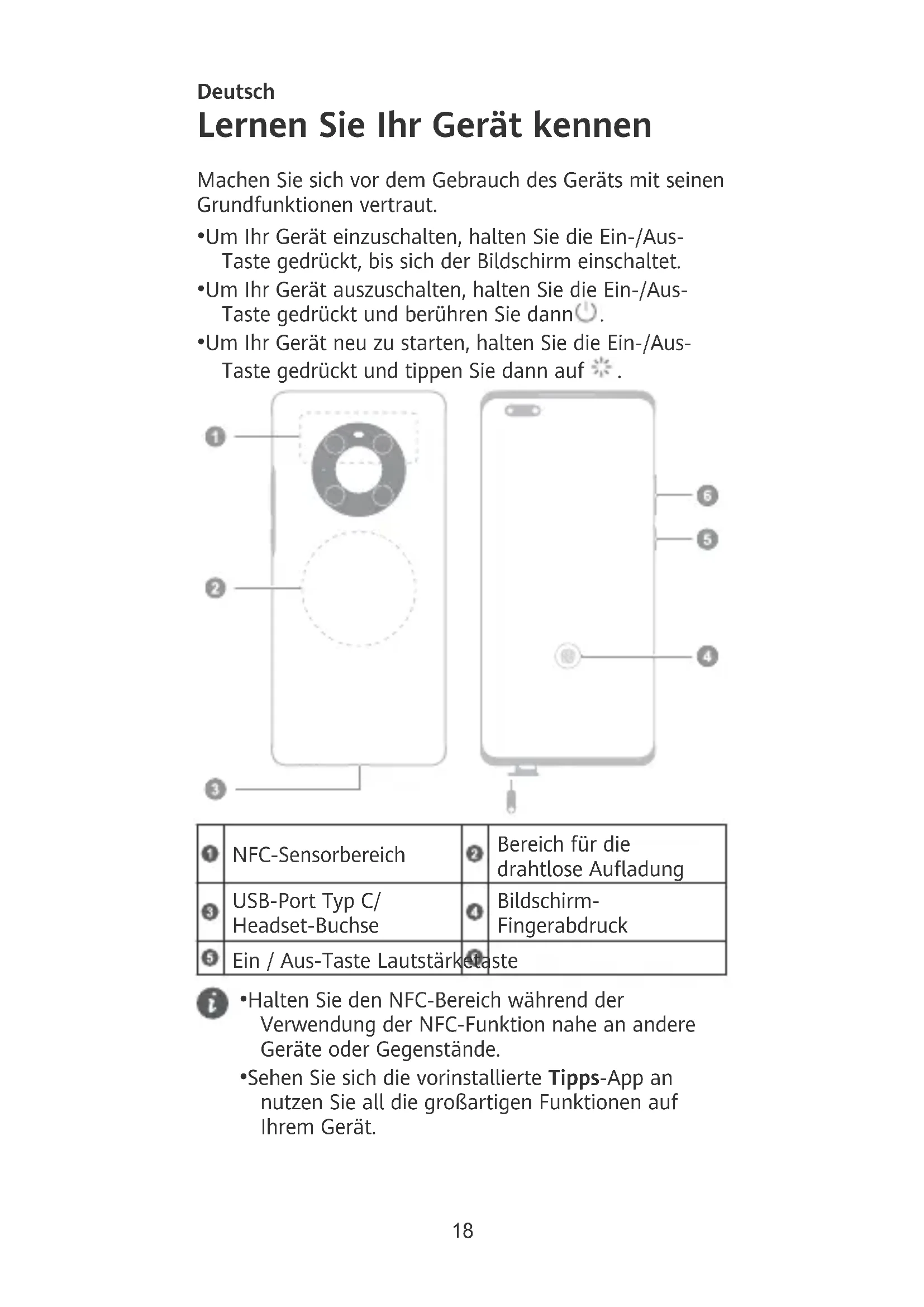 - Sehen Sie sich die vorinstallierte Tipps-App an nutzen Sie all die großartigen Funktionen auf Ihrem Gerät. 18Erste Schritte
