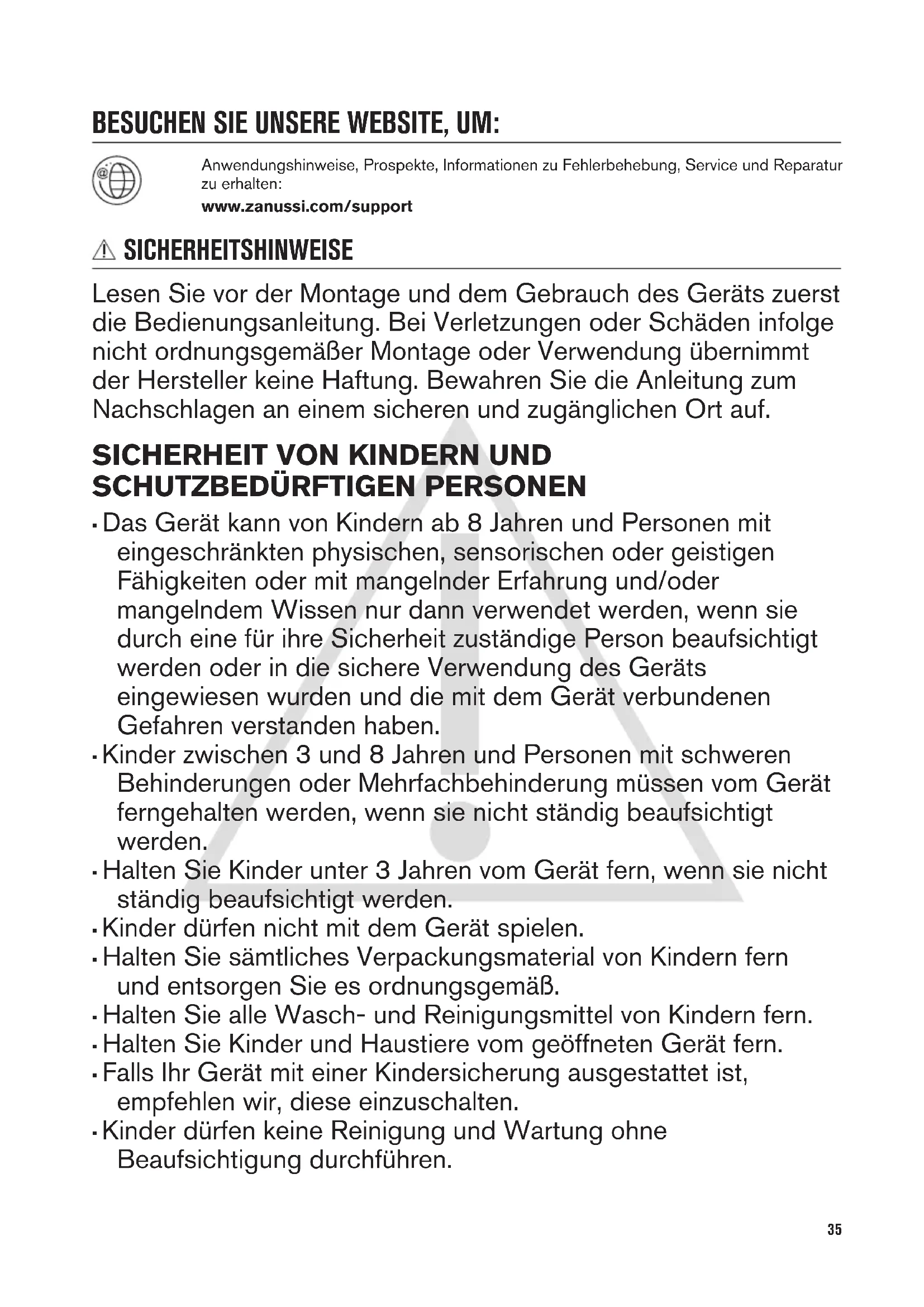 - Kinder dürfen keine Reinigung und Wartung ohne Beaufsichtigung durchführen. 35ALLGEMEINE SICHERHEIT