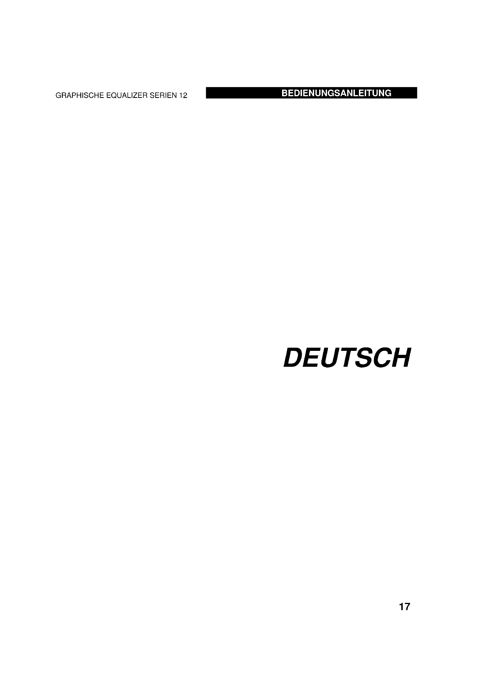 GRAPHISCHE EQUALIZER SERIEN 12Netzkabel an einen geeigneten Netzanschluß, weit von Audio-Leitungen entfernt. Das Gerät wird mit dem auf der Rückseite befindlichen Netzschalter oder dem Schalter an dem Netzanschluß ein- und ausgeschaltet. Da die Equalizer Serein 12 relativ wenig Energie verbrauchen, können sie eingeschaltet bleiben.