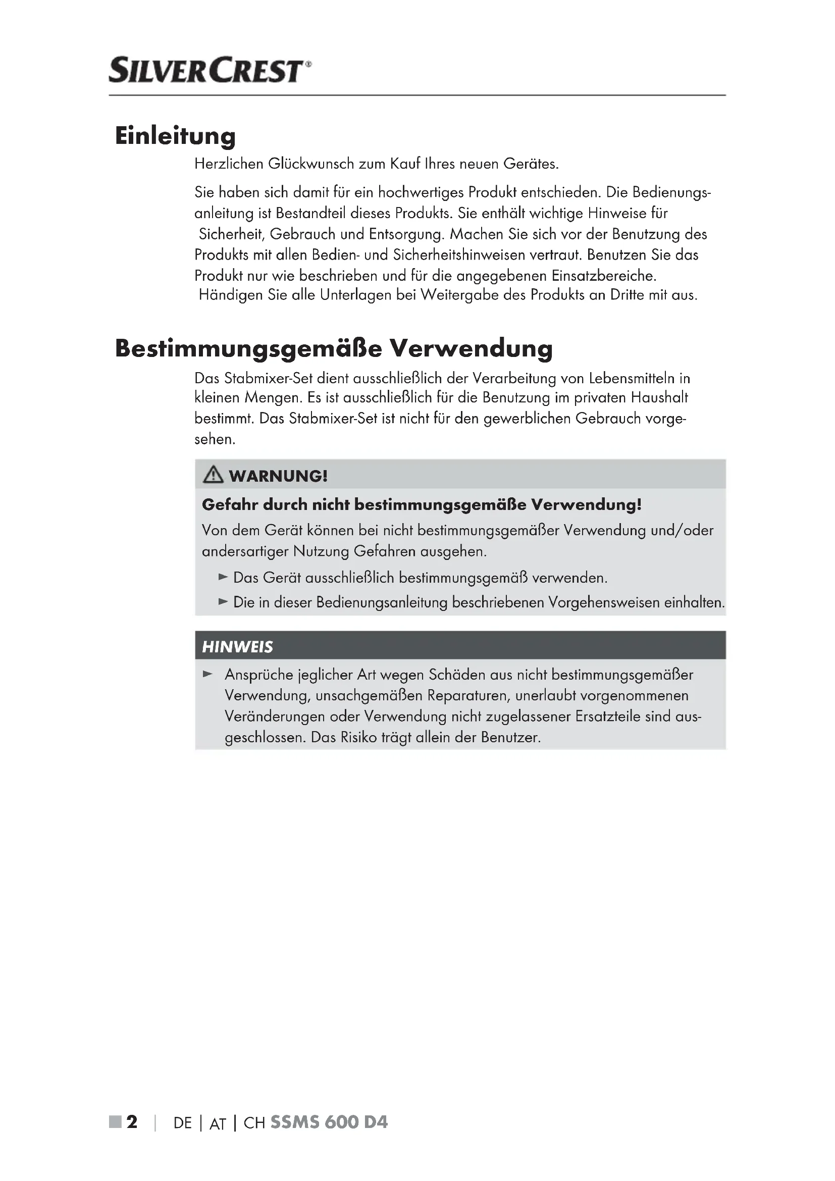 SSMS 600 E2 - Stabmixer SILVERCREST - Kostenlose Bedienungsanleitung