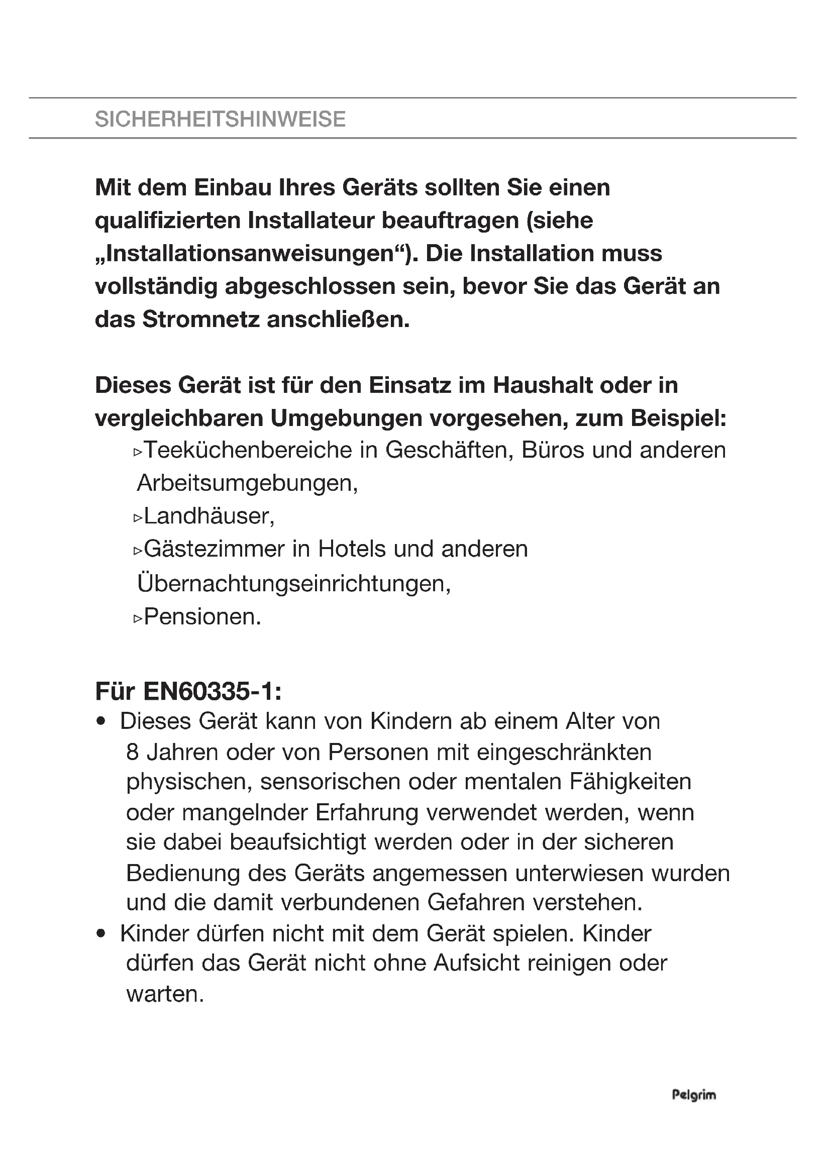 Finden Sie kostenlos die Bedienungsanleitung des Geräts GVW240LS Pelgrim als PDF.