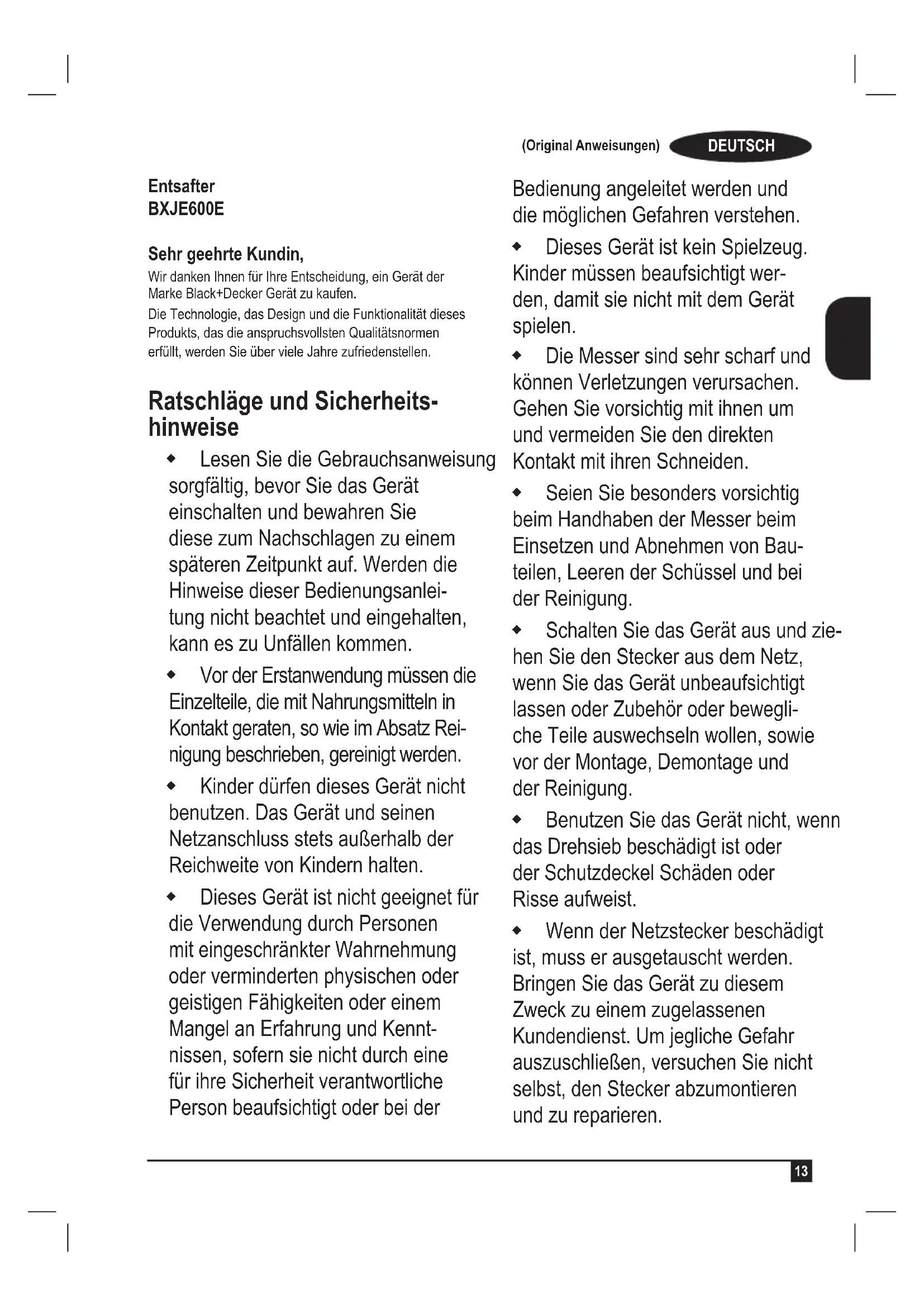 BEDIENUNGSANLEITUNG BXJE600E BLACK & DECKER