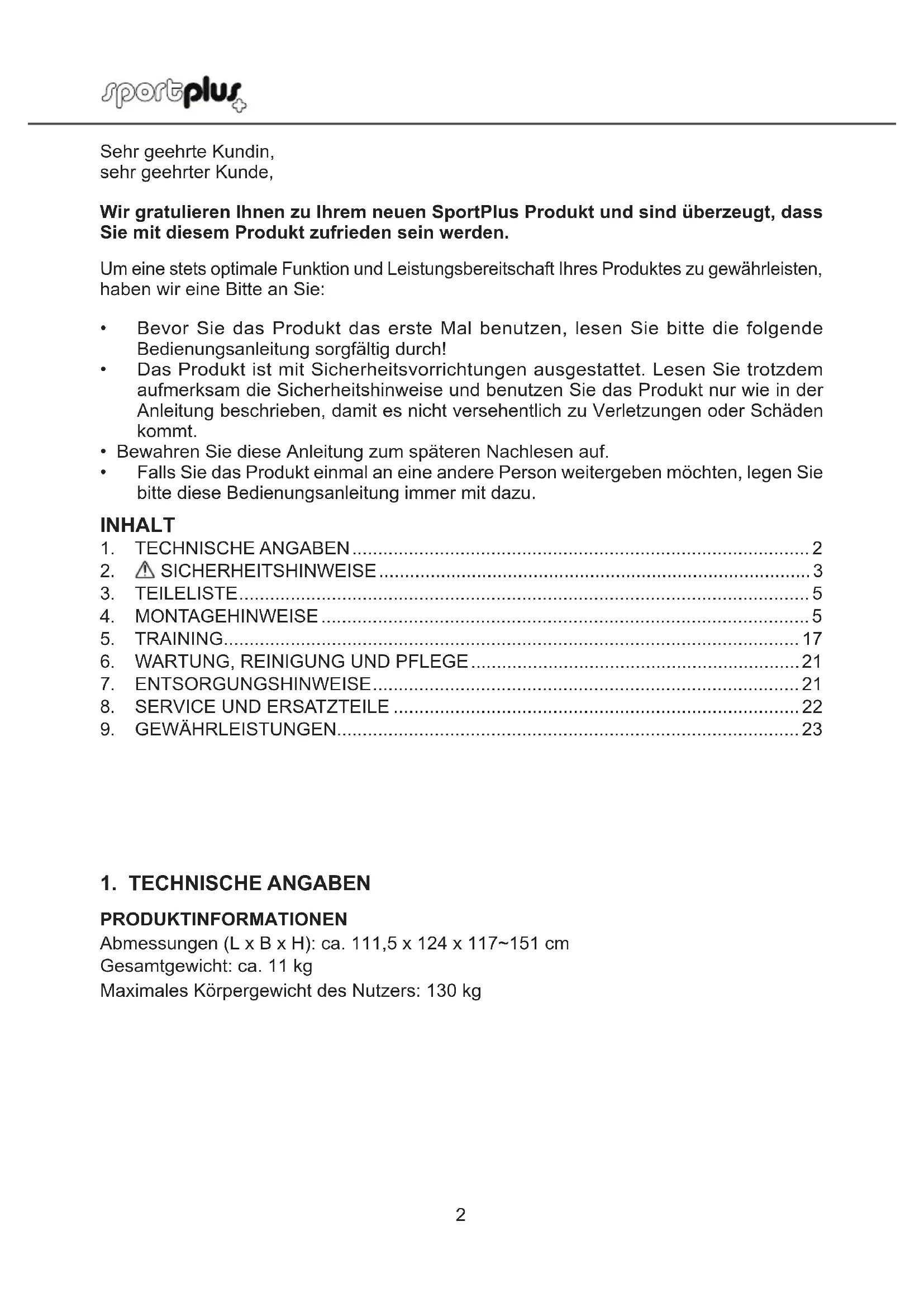 - Ebenso ausgeschlossen sind Verschleiß- und Verbrauchsmaterialien. Das Produkt ist nur für den privaten Zweck bestimmt. Für die gewerbliche Nutzung besteht keine Gewährleistung. SP-T-110-IM-V06-INT.indb 23 2/14/17 3:59 PM24 Dear Customer, Congratulations for choosing a SportPlus product. We have every expectation that you will be fully satised with your new purchase. To guarantee optimal function of this product, please adhere to the following instructions: