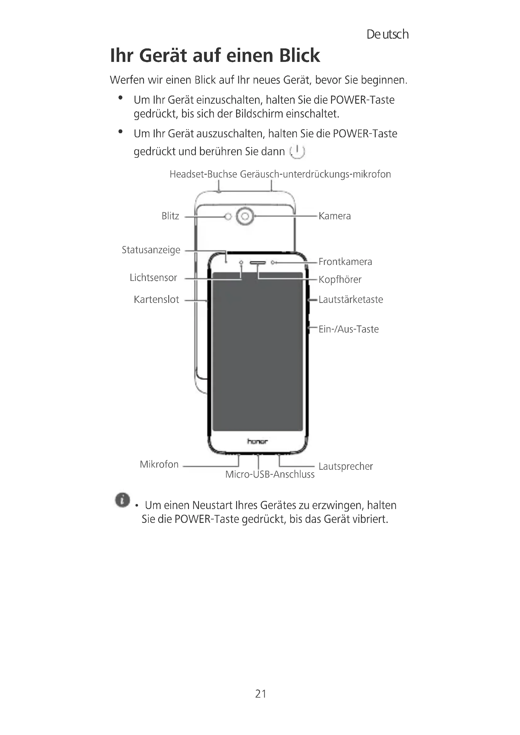 - Um einen Neustart Ihres Gerätes zu erzwingen, halten Sie die POWER-Taste gedrückt, bis das Gerät vibriert. Headset-Buchse Geräusch-unterdrückungs-mikrofon