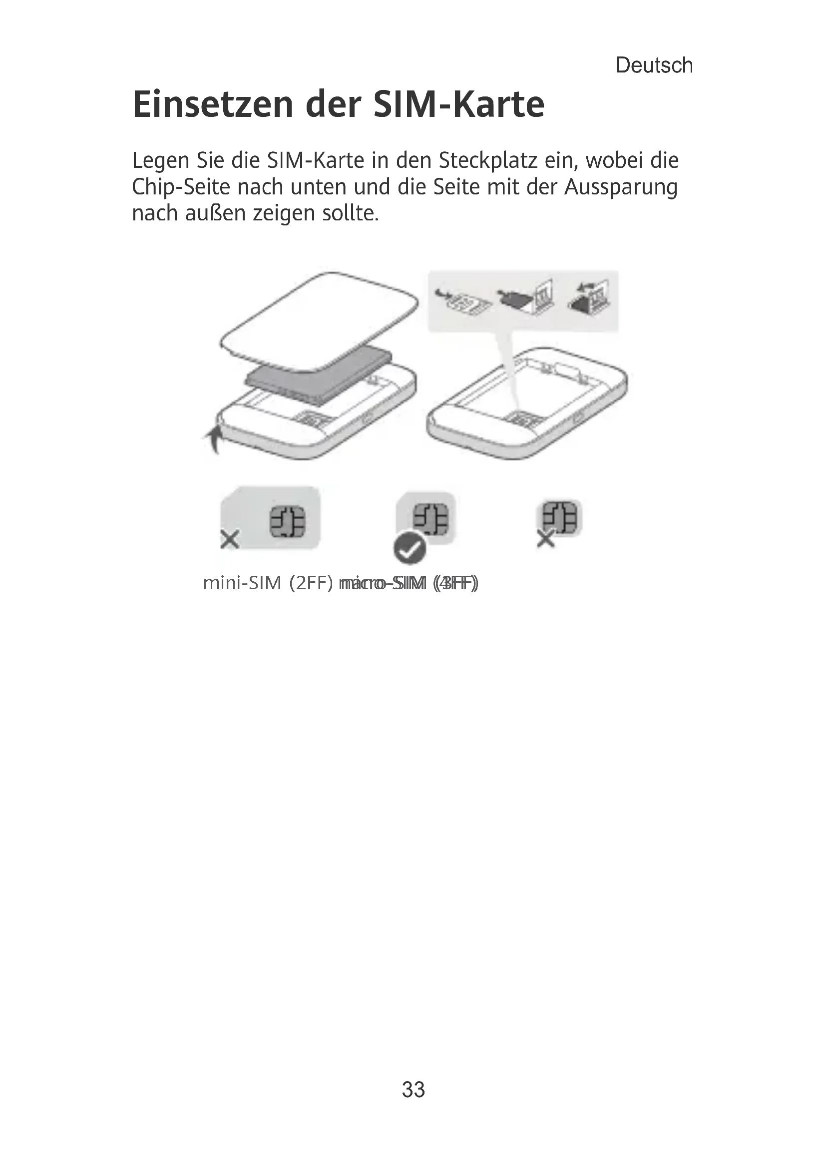 - Stellen Sie sicher, dass die SIM-Karte die richtige Größe hat und korrekt in den Steckplatz eingefügt ist.
