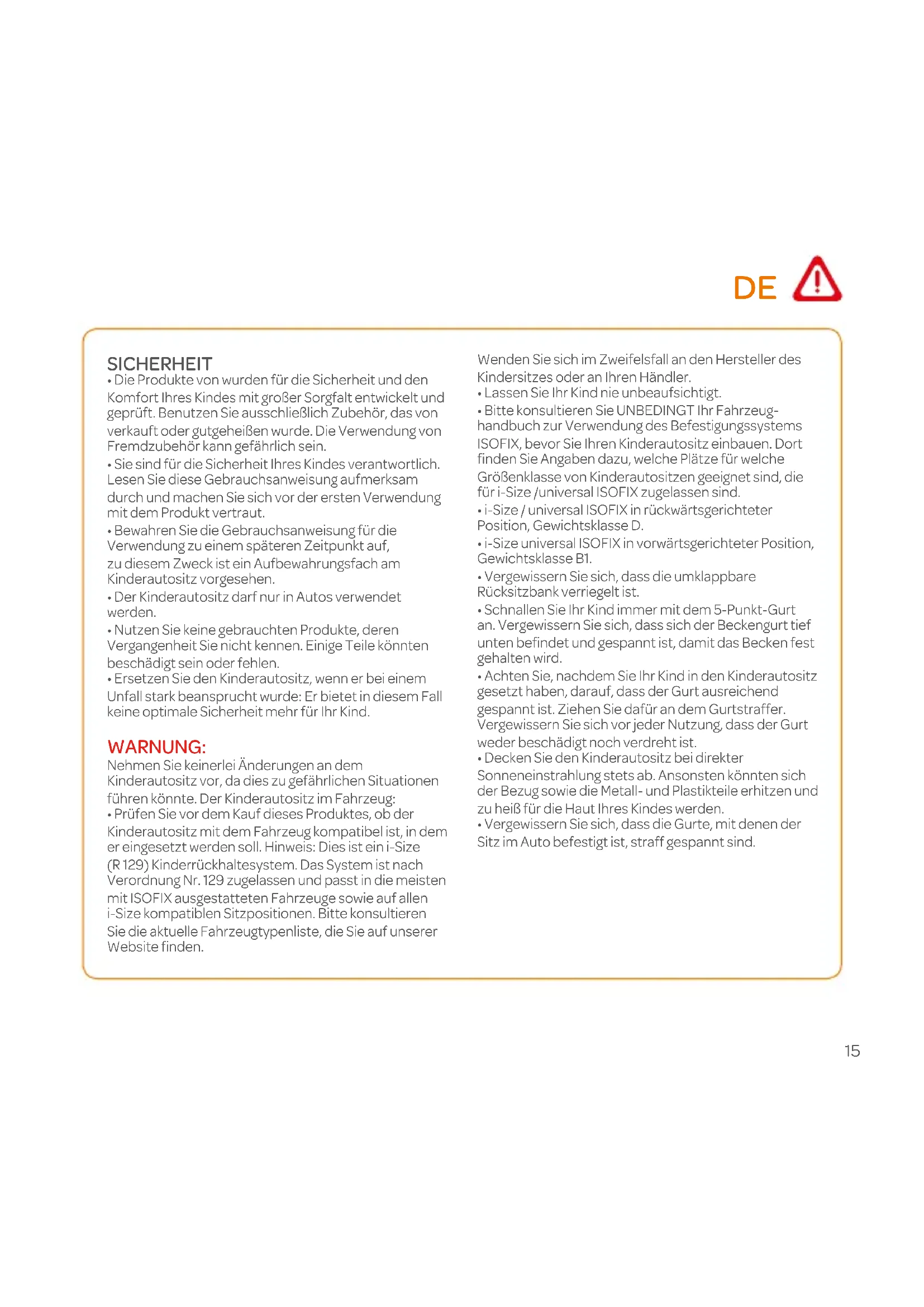 - Dieses Kinderrückhaltesystem ist nur dann effi zient, wenn die Gebrauchsanweisung beachtet wird.
