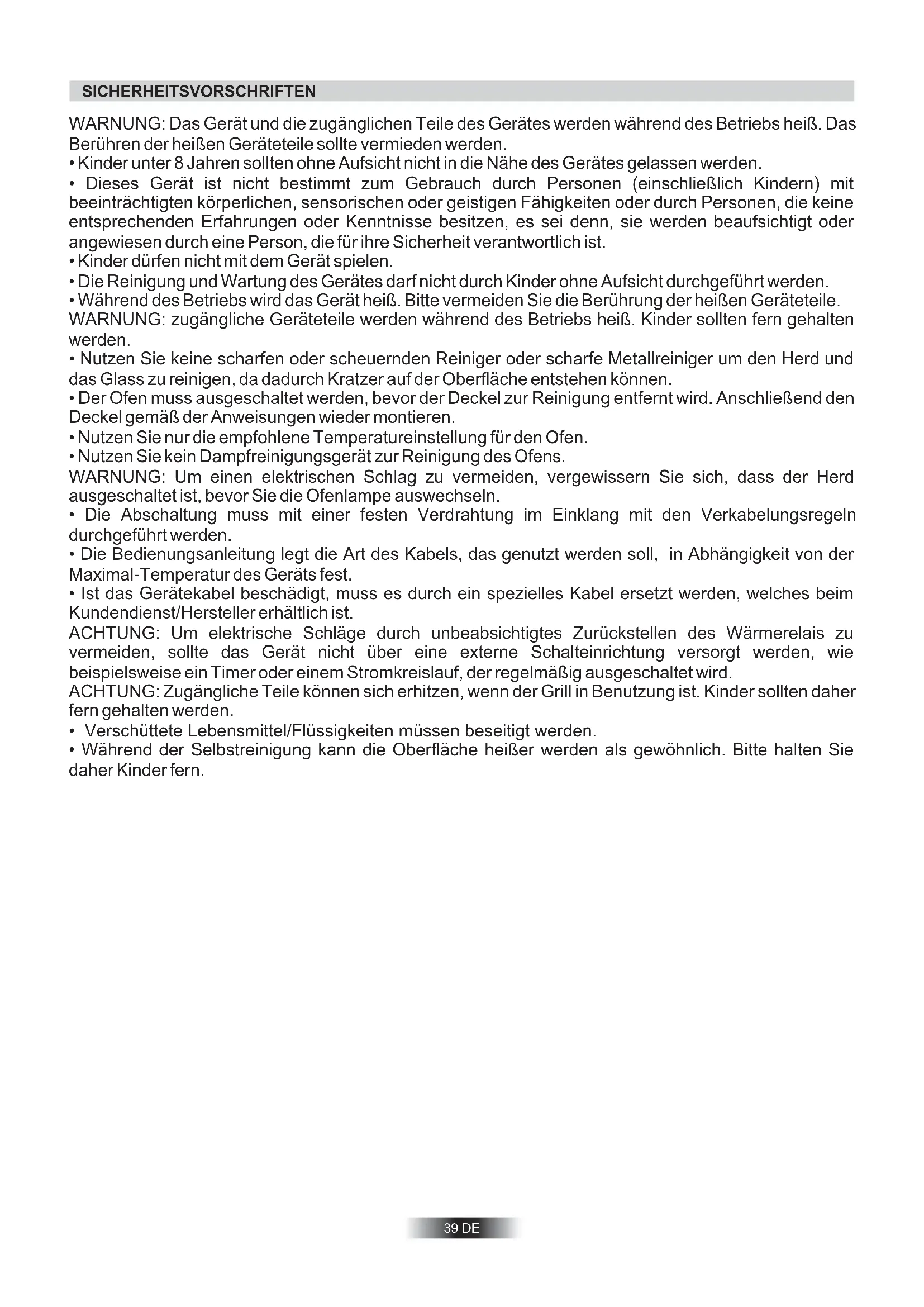 - Während der Selbstreinigung kann die Oberfläche heißer werden als gewöhnlich. Bitte halten Sie daher Kinder fern.ALLGEMEINE HINWEISE Herzlichen Glückwunsch! Sie haben ein hochwertiges Qualitätsprodukt erworben. Damit Ihr Gerät stets zu Ihrer Zufriedenheit arbeitet, raten wir Ihnen folgendes: