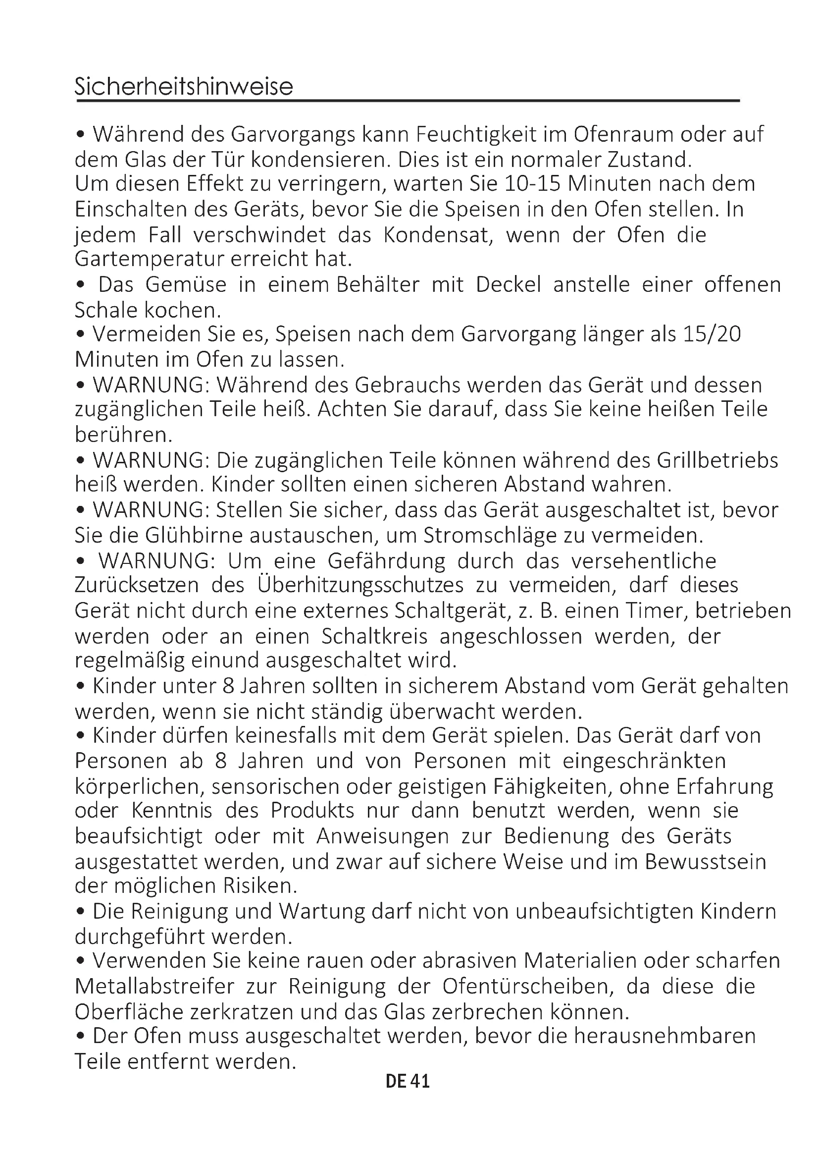 - Der Ofen muss ausgeschaltet werden, bevor die herausnehmbaren Teile entfernt werden.DE 42