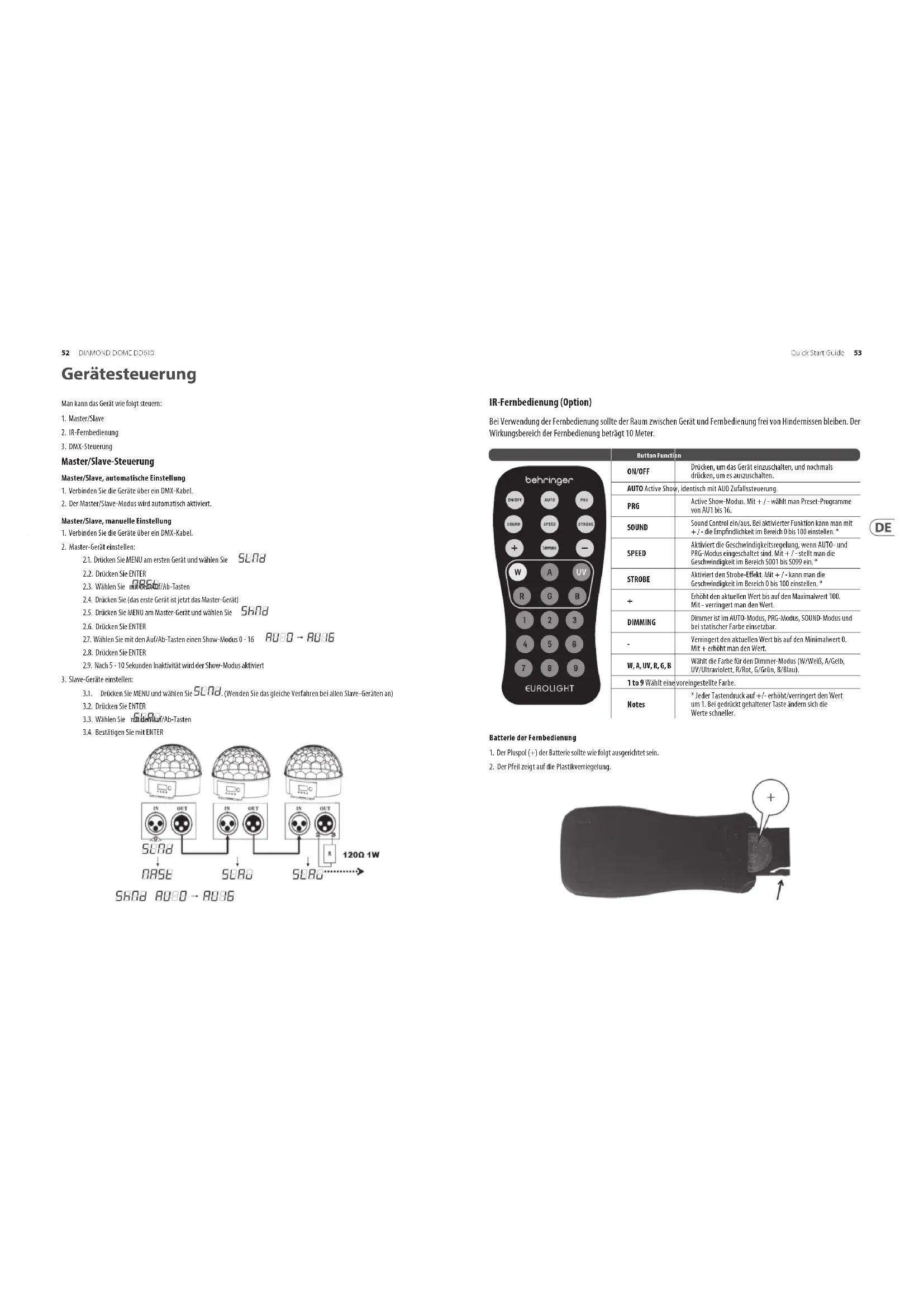 Eurolight Diamond Dome DD610 - Beleuchtung BEHRINGER - Kostenlose Bedienungsanleitung