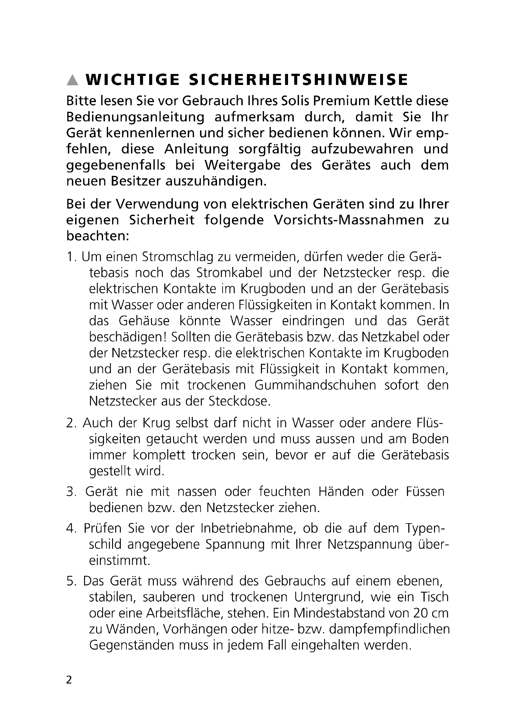 19. Benutzen Sie den Solis Wasserkocher nur zum Erhitzen von