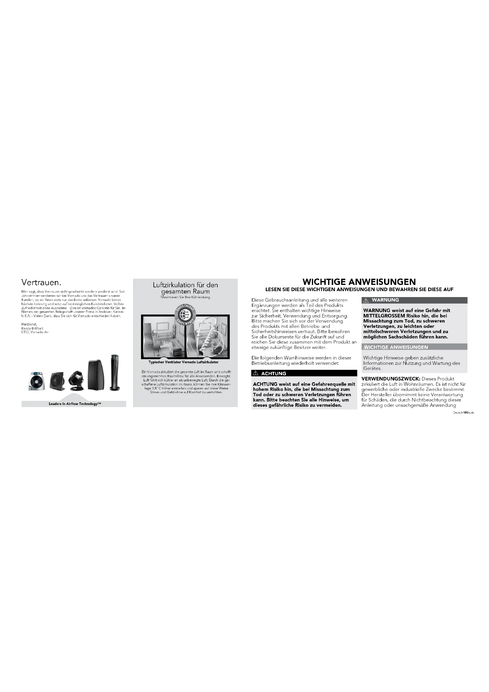 Whole Room Air Circulator Owner’s Guide LESEN SIE DIESE WICHTIGEN ANWEISUNGEN UND BEWAHREN SIE DIESE AUF Luftzirkulator für den ganzen Raum, Betriebsanleitung