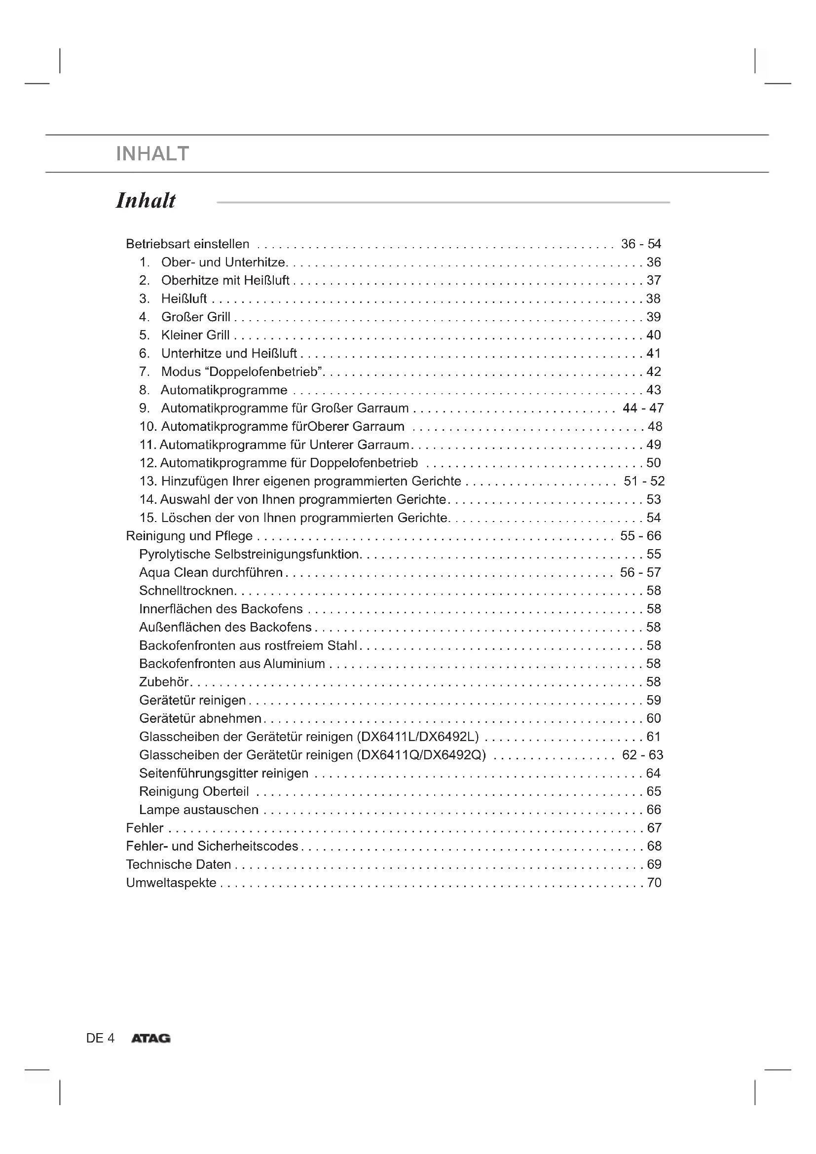 10. Automatikprogramme fürOberer Garraum . . . . . . . . . . . . . . . . . . . . . . . . . . . . . . . . 48