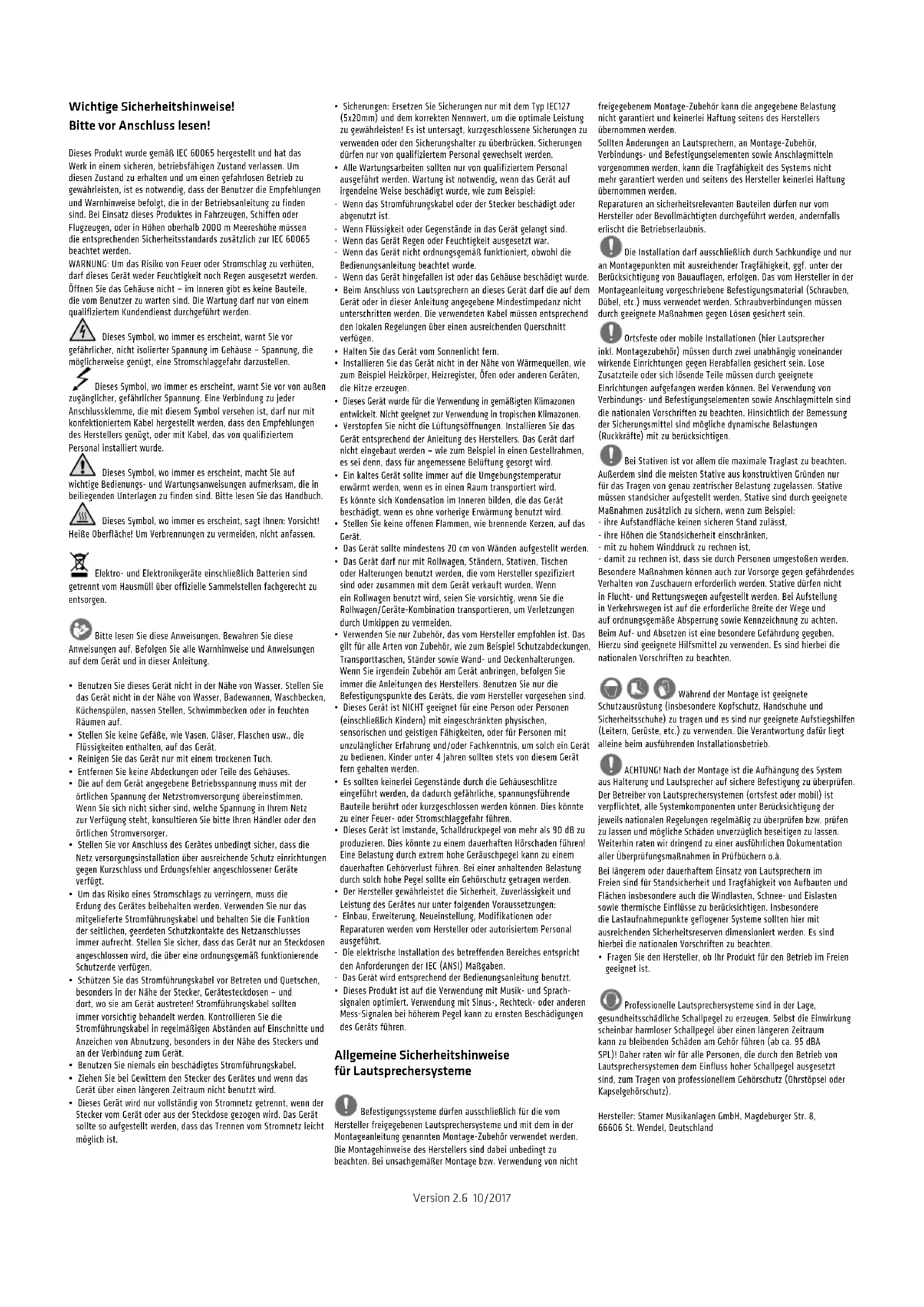 Hersteller: Stamer Musikanlagen GmbH, Magdeburger Str. 8, 66606 St. Wendel, Deutschland
