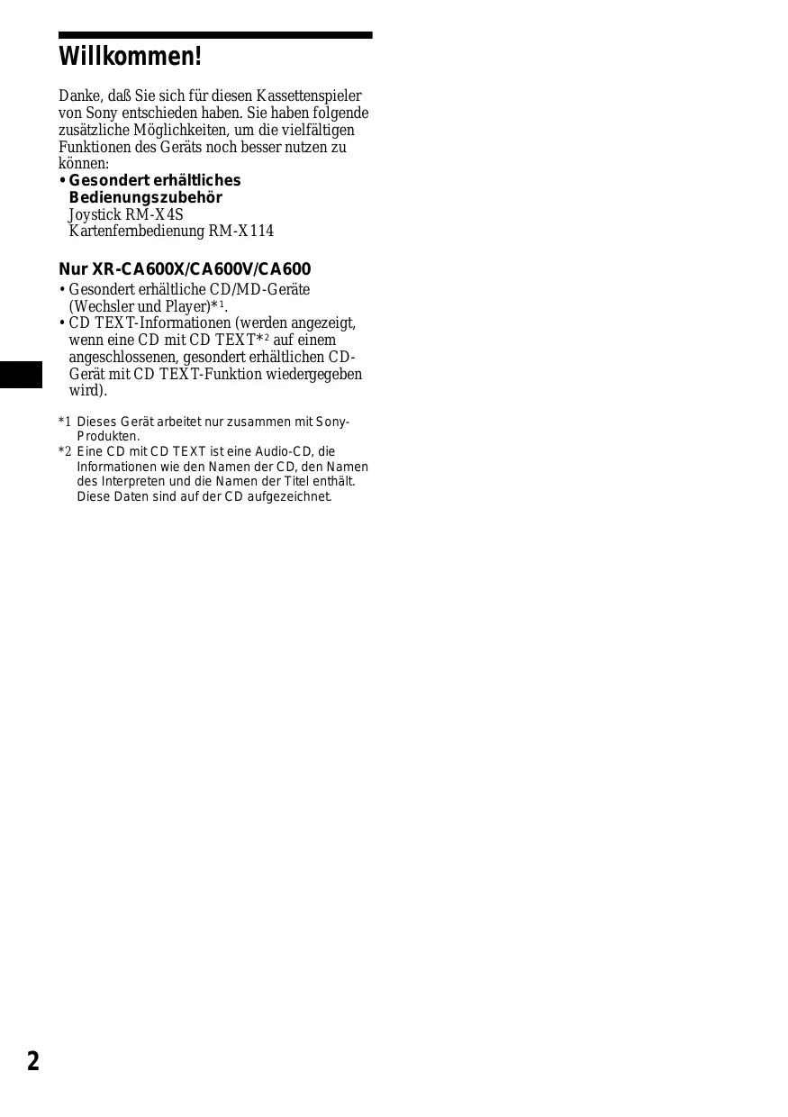 Danke, daß Sie sich für diesen Kassettenspieler von Sony entschieden haben. Sie haben folgende zusätzliche Möglichkeit, um die vielfältigen Funktionen des Geräts noch better nutzen zu konnen: