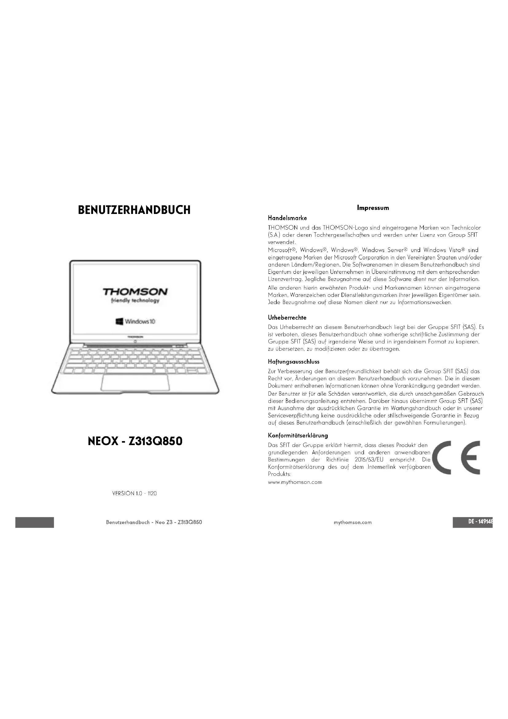 NEO Z3 - Laptop THOMSON - Kostenlose Bedienungsanleitung