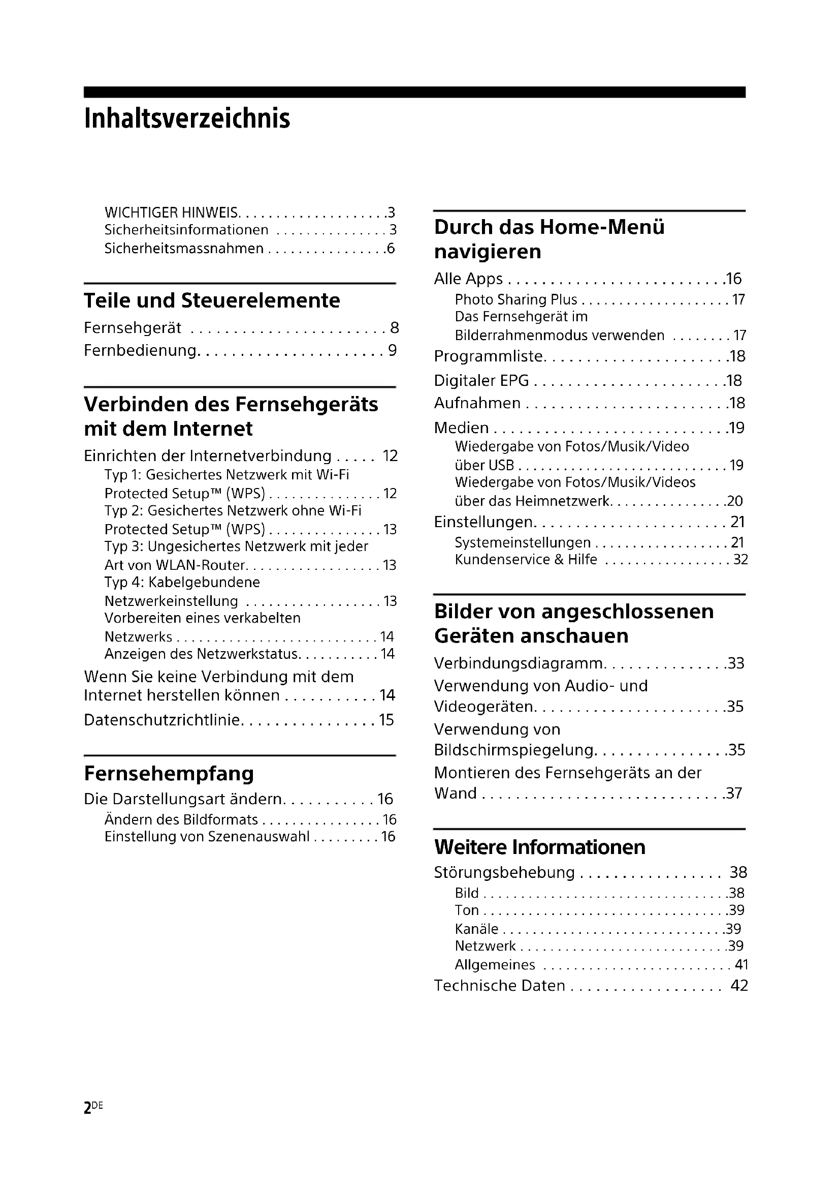 - Lesen Sie sich vor der Bedienung des Fernsehgeräts die „Sicherheitsinformationen“ durch (Seite 3).
