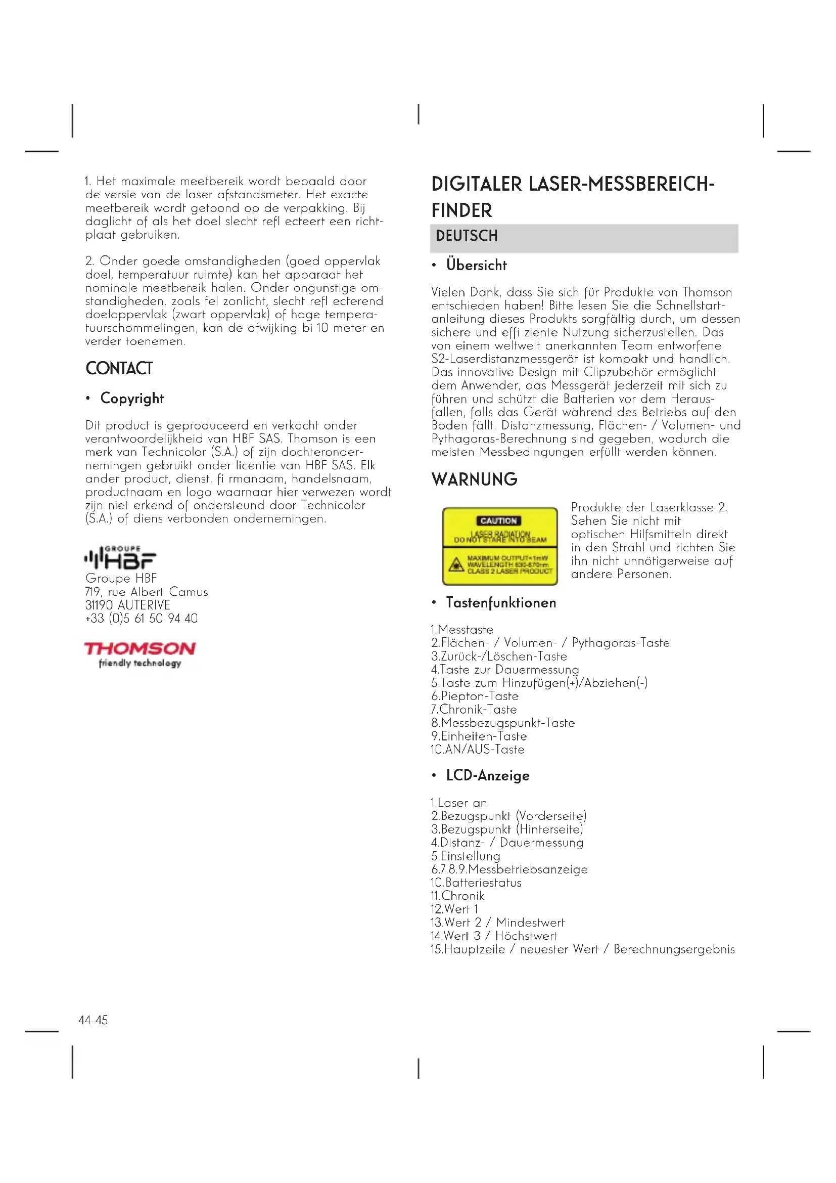 Digital Laser Rangefinder - Entfernungsmesser THOMSON - Kostenlose Bedienungsanleitung