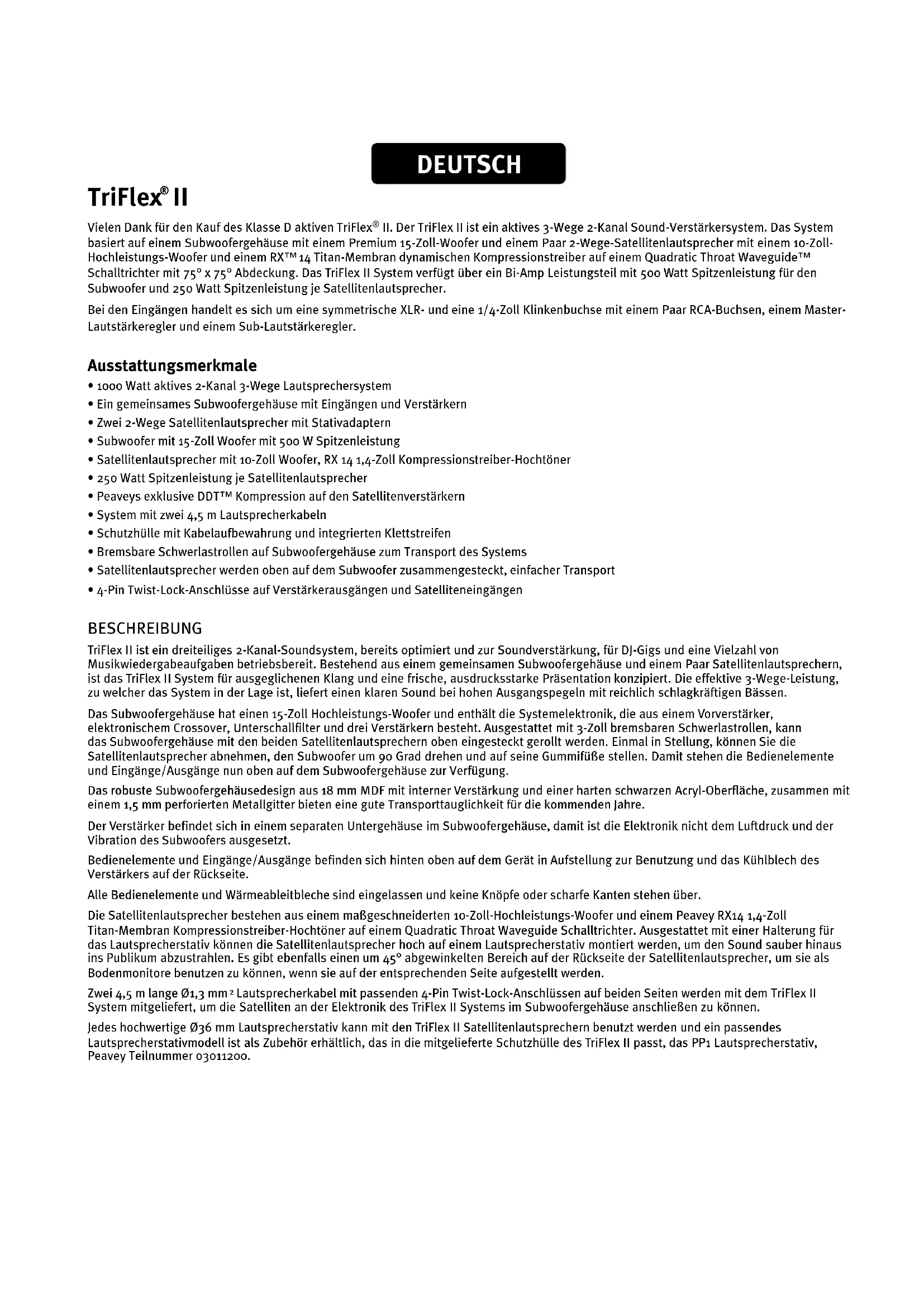 TriFlex II - Lautsprecher PEAVEY - Kostenlose Bedienungsanleitung