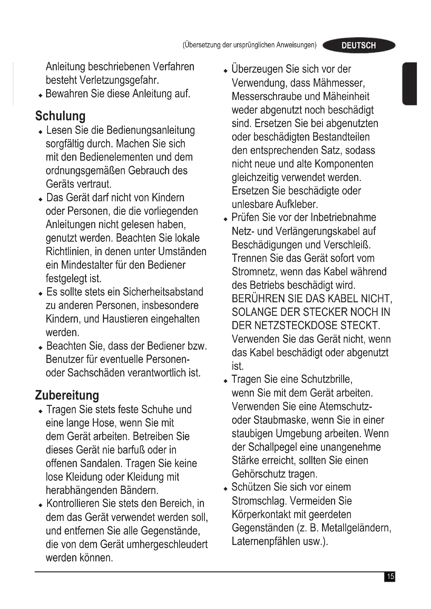 (Übersetzung der ursprünglichen Anweisungen) DEUTSCH