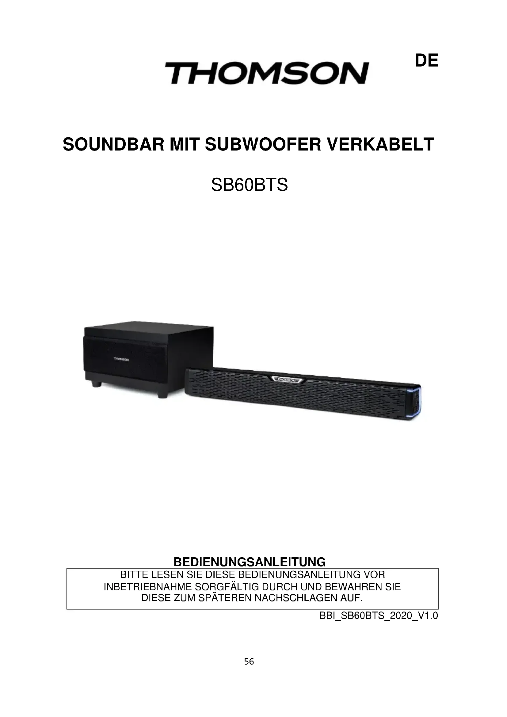 BEDIENUNGSANLEITUNG SB60BTS THOMSON