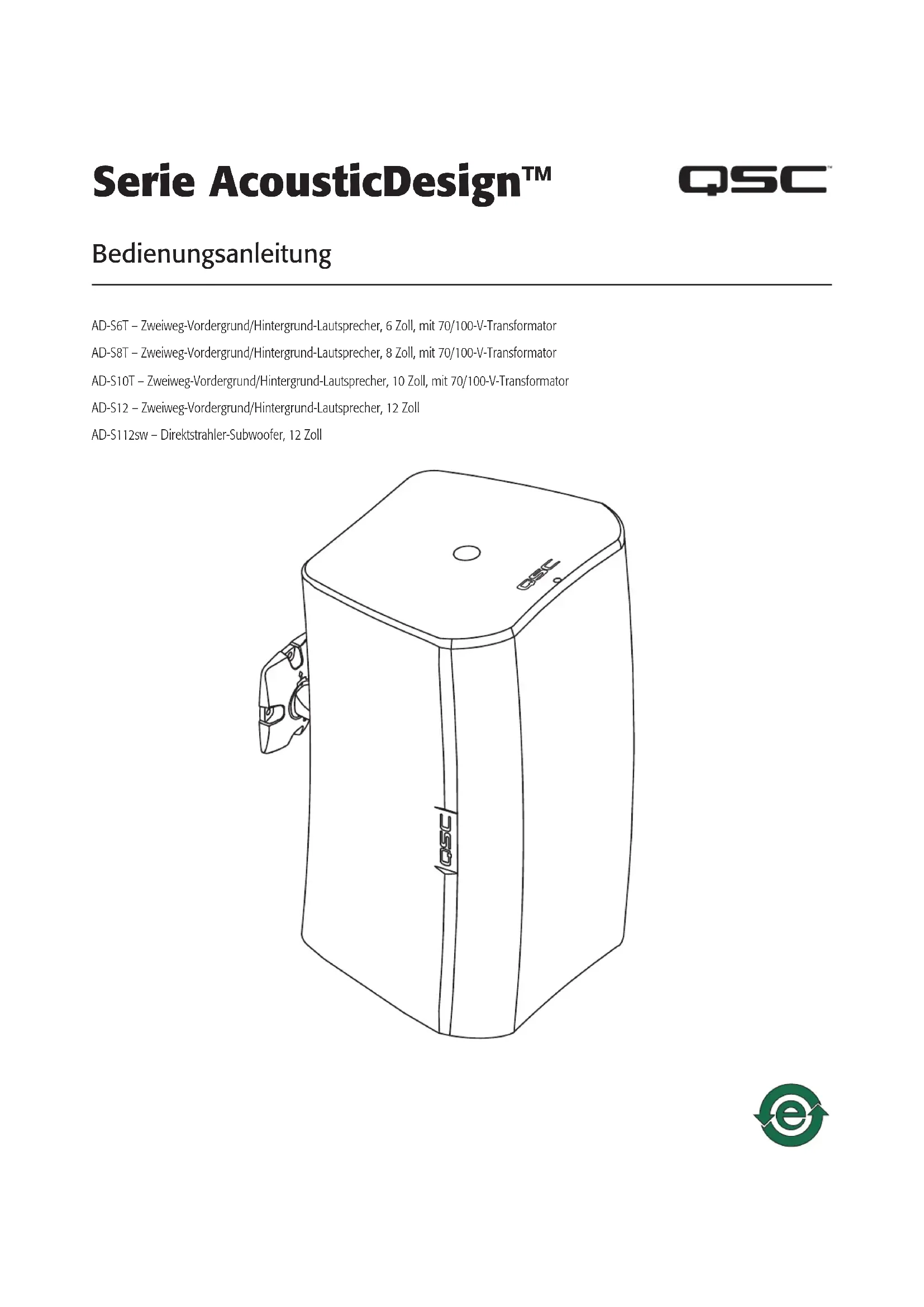 Laden Sie die Anleitung für Ihr Subwoofer kostenlos im PDF-Format! Finden Sie Ihr Handbuch AcousticDesign ADS112sw - QSC und nehmen Sie Ihr elektronisches Gerät wieder in die Hand. Auf dieser Seite sind alle Dokumente veröffentlicht, die für die Verwendung Ihres Geräts notwendig sind. AcousticDesign ADS112sw von der Marke QSC.