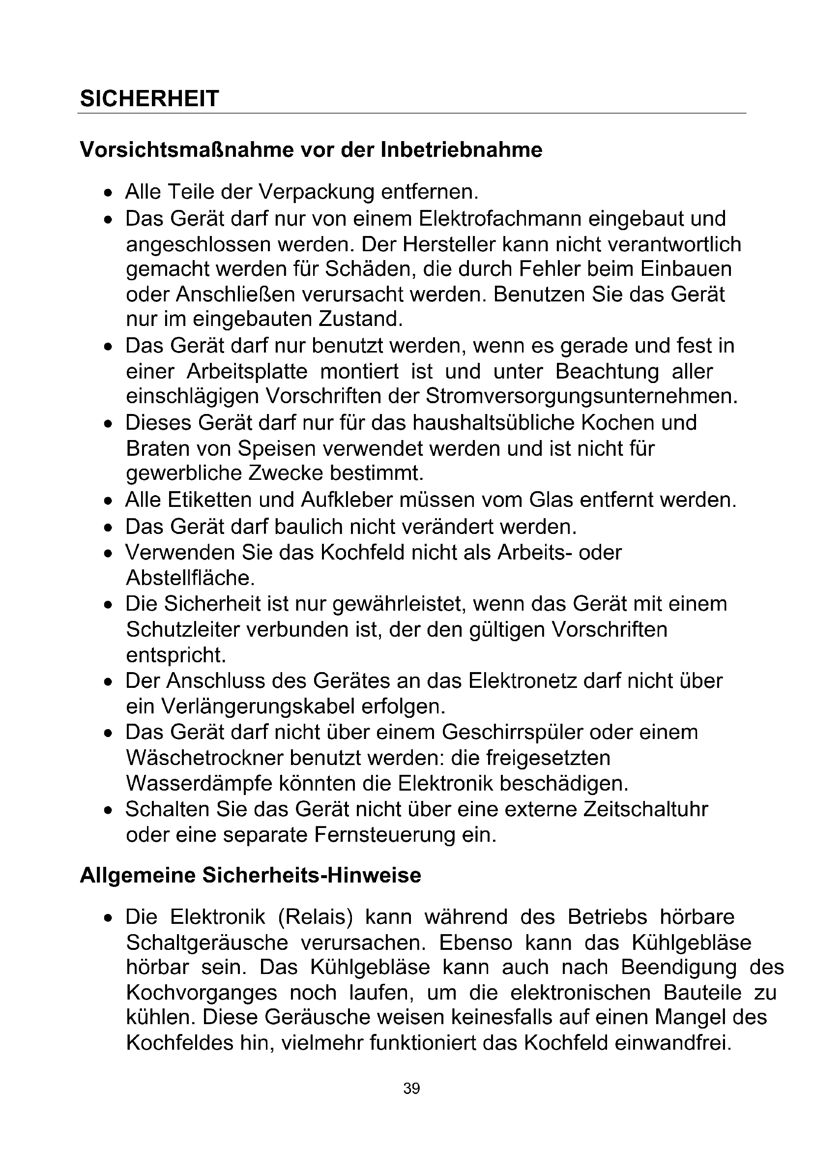 ALLGEMEINE SICHERHEITS-HINWEISE 39