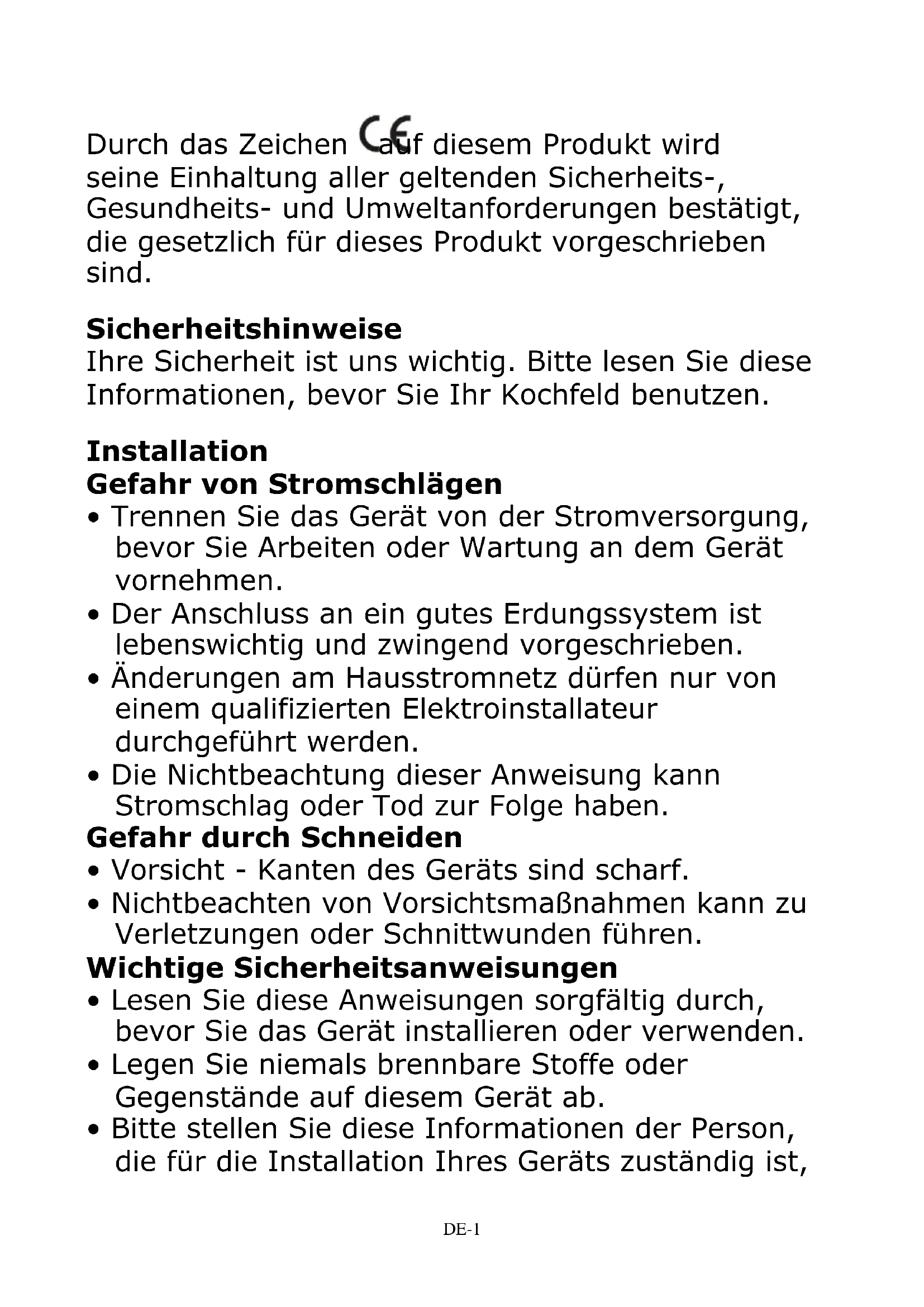 - Um Gefahren zu vermeiden, muss dieses Gerät entsprechend den vorliegenden Installations- anweisungen installiert werden.