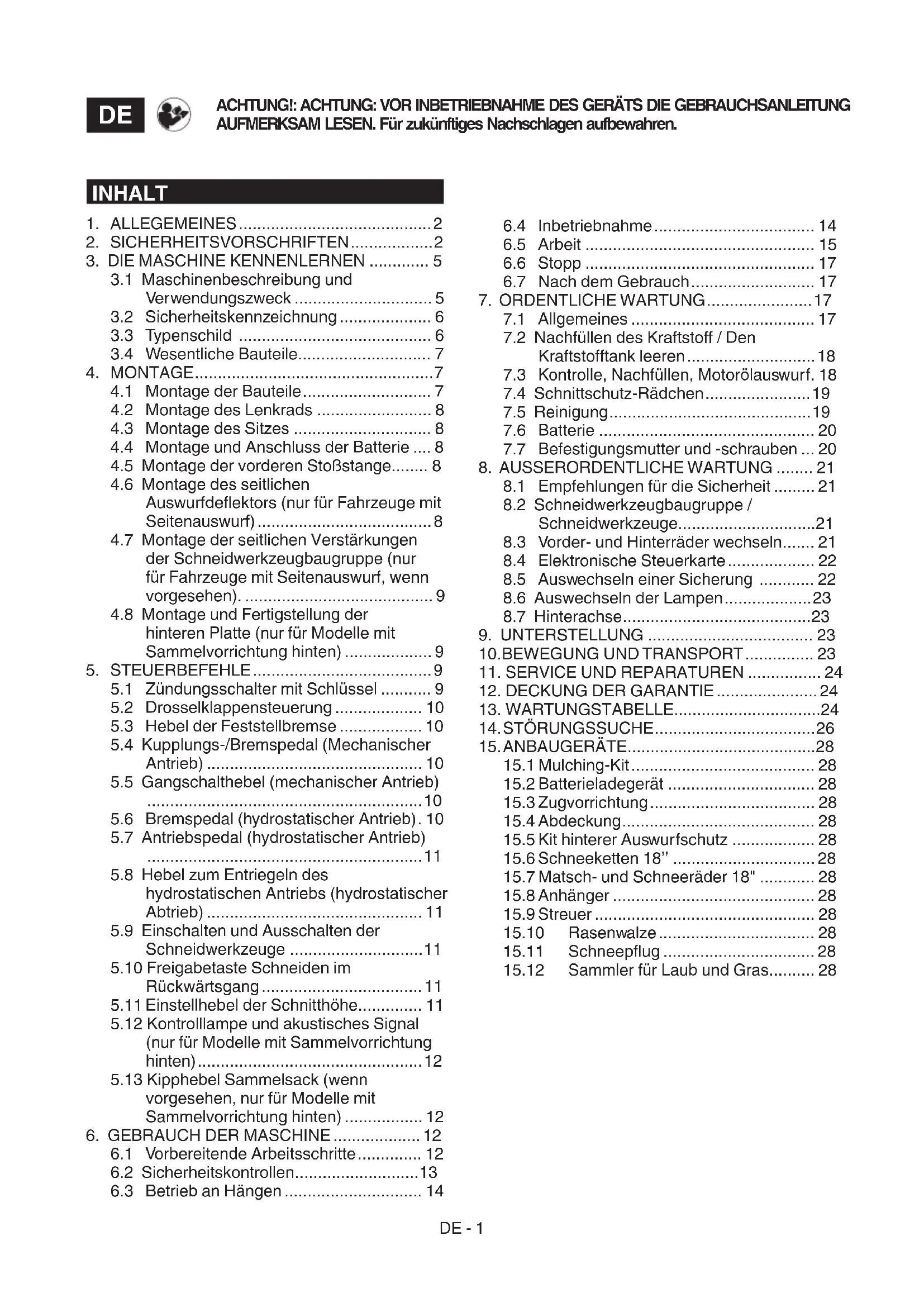 15.12 Sammler für Laub und Gras .......... 28DE - 2