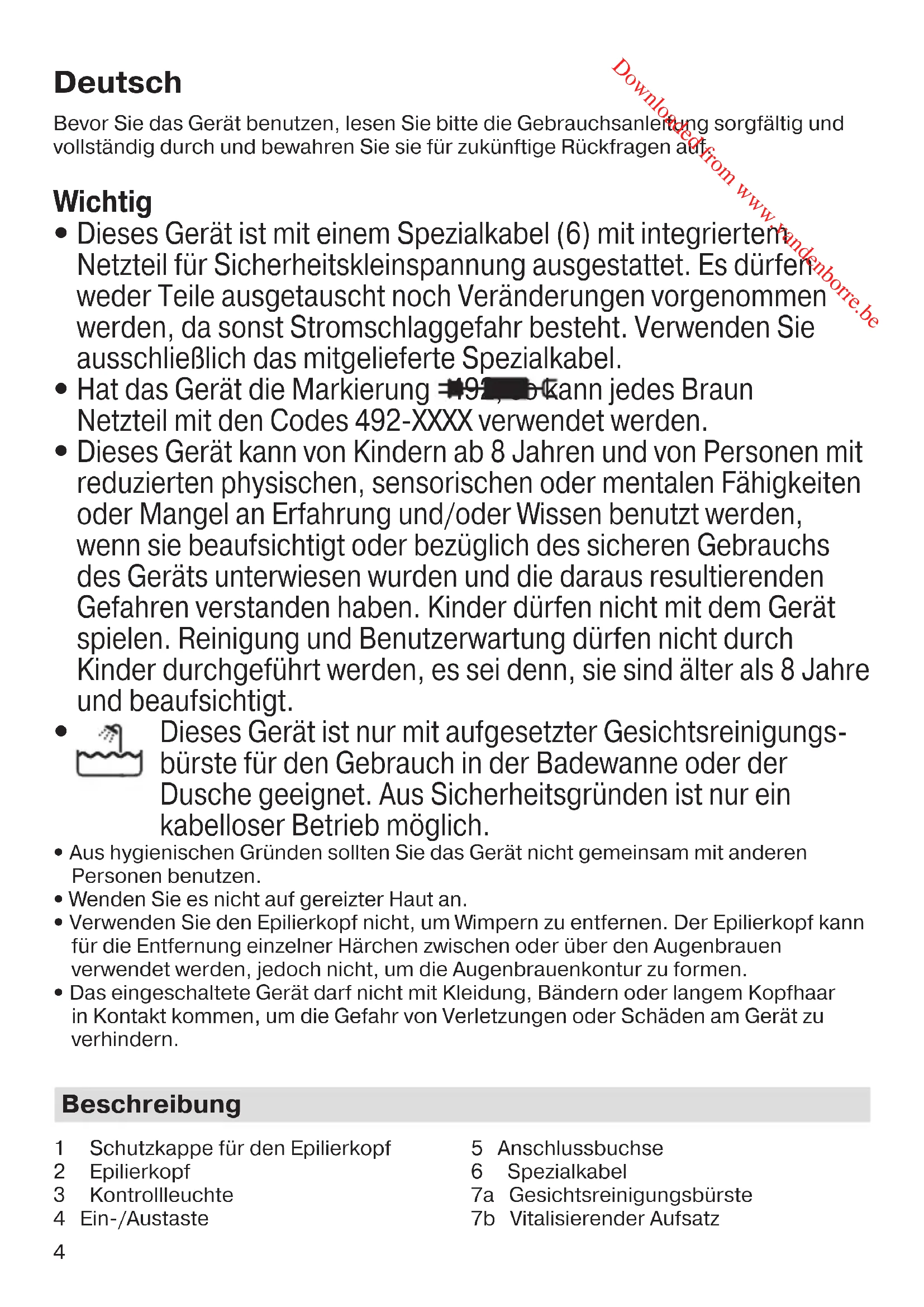 Hat das Gerät die Markierung 492, so kann jedes Braun Netzteil mit den Codes 492-XXXX verwendet werden.