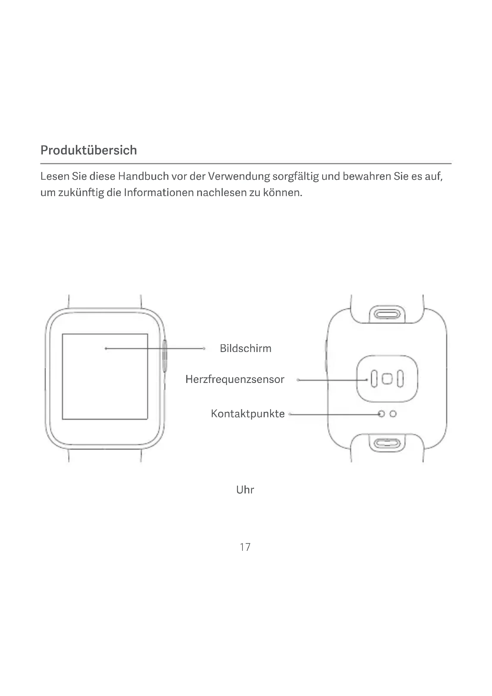 - Sicherheitshinweise Wenn Sie mit der Uhr Ihre Herzfrequenz messen, sollten Sie Ihr Handgelenk ruhig halten. Die Uhr ist bis 5 ATM als wasserdicht eingestu. Sie können sie unter der Dusche, im Pool oder beim Schwimmen in Strandnähe tragen. Tragen Sie sie jedoch nicht in der Sauna oder beim Tauchen im Meer. Der Touchscreen der Uhr kann unter Wasser nicht verwendet werden. Wenn die Uhr mit Wasser in Berührung kommt, entfernen Sie überschüssiges Wasser mit einem weichen Tuch von der Oberfläche, bevor Sie das Gerät verwenden. Tragen Sie die Uhr beim täglichen Gebrauch nicht zu stramm. Halten Sie den Kontaktbere- ich trocken und reinigen Sie den Riemen regelmäßig mit Wasser. Legen Sie die Uhr sofort ab und holen Sie ärztlichen Rat ein, wenn Ihre Haut im Kontaktbereich gerötet oder geschwollen ist. Die Produktinformationen sind am Schlitz des Riemens aufgeführt. Sie können den Riemen entfernen, um diese zu überprüfen. Verwenden Sie bie die mitgelieferte Ladestation, um die Uhr aufzuladen. Verwenden Sie nur solche Netzteile, die den örtlichen Sicherheitsnormen entsprechen oder von qualifizierten Herstellern zertifiziert und geliefert werden. Halten Sie das Netzteil und die Ladestation stets von Feuchtigkeit fern, wenn Sie die Uhr aufladen. Berühren Sie diese Teile nicht mit feuchten Händen. Setzen Sie das Netzteil und die Ladestation niemals Regen oder anderen Flüssigkeiten aus. Die Betriebstemperatur der Uhr liegt zwischen 0 °C und 35 °C. Wenn die Umgebungstemperatur zu hoch oder zu niedrig ist, kann dies zu Fehlfunktionen der Uhr führen. Die Uhr verfügt über einen eingebaute Akku. Um Schäden am Akku oder der Uhr zu vermeiden, sollten Sie die Uhr nicht selbst zerlegen und den Akku ersetzen. Der Akku darf nur von autorisierten Serviceanbietern ausgewechselt werden. Andernfalls kann es bei Verwendung eines falschen Akkutyps zu Gefahren bis #hin zu Personenschäden kommen. Der Akku darf nicht zerlegt oder eingestochen oder Stößen oder Feuer ausgesetzt werden. Verwenden Sie den Akku nicht, wenn dieser aufgebläht ist oder Flüssigkeit austri. Werfen Sie die Uhr oder den Akku niemals ins Feuer, da dies zu Explosionen führen kann. Diese Uhr ist kein medizinisches Gerät und die von der Uhr bereitgestellten Daten und Informationen sollten nicht als Grundlage für Diagnosen, Behandlungen oder zur gesundheitlichen Prävention verwendet werden. Die Uhr und das Zubehör können Kleinteile enthalten. Um zu vermeiden, dass Kinder einer Erstickungsgefahr ausgesetzt oder dass anderweitige Gefahren oder Schäden verursacht werden, sollten Sie die Uhr außerhalb der Reichweite von Kindern auewahren. Diese Uhr ist kein Spielzeug und darf von Kindern ausschließlich unter elterlicher Aufsicht genutzt werden. Ein Missbrauch oder eine fehlerhae Handhabung des Akkus kann zu Überhitzung, Austreten von Flüssigkeit oder einer Explosion führen. Mögliche Verletzungen können wie folgt vermieden werden: Akku nicht zerdrücken oder durchstoßen. Der Akku darf nicht kurzgeschlossen oder Wasser bzw. anderen Flüssigkeiten ausgesetzt werden Halten Sie den Akku von Kleinkindern fern. Halten Sie den Akku von offenem Feuer fern. Bewahren Sie den Akku nicht in Umgebungen mit extrem hohen Temperaturen oder extrem niedrigem Ludruck auf. Nutzen Sie den Akku nicht mehr, wenn er beschädigt ist oder wenn Sie Entladungen oder Ansammlungen von Fremdstoffen an den Akkuleitungen bemerken. Wir empfehlen, die Akkus etwa alle drei Monate zu laden, um eine Überladung zu vermeiden. Entsorgen Sie den Akku nicht in einem Müllbehälter, der auf einer Deponie entleert wird. Entsorgen Sie den Akku gemäß den lokalen Gesetzen oder Vorschrien.